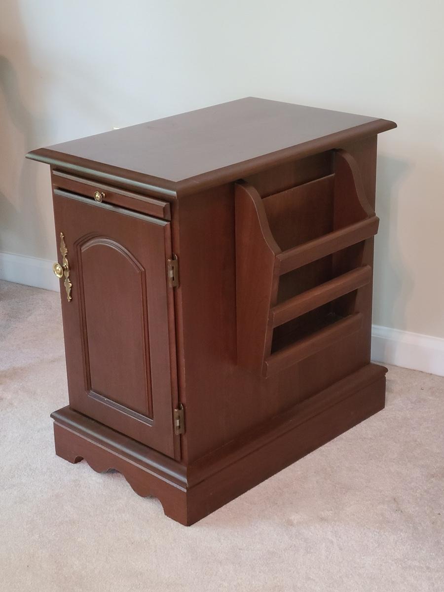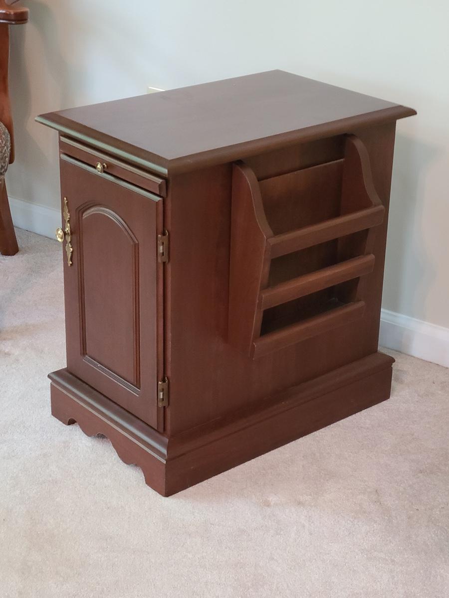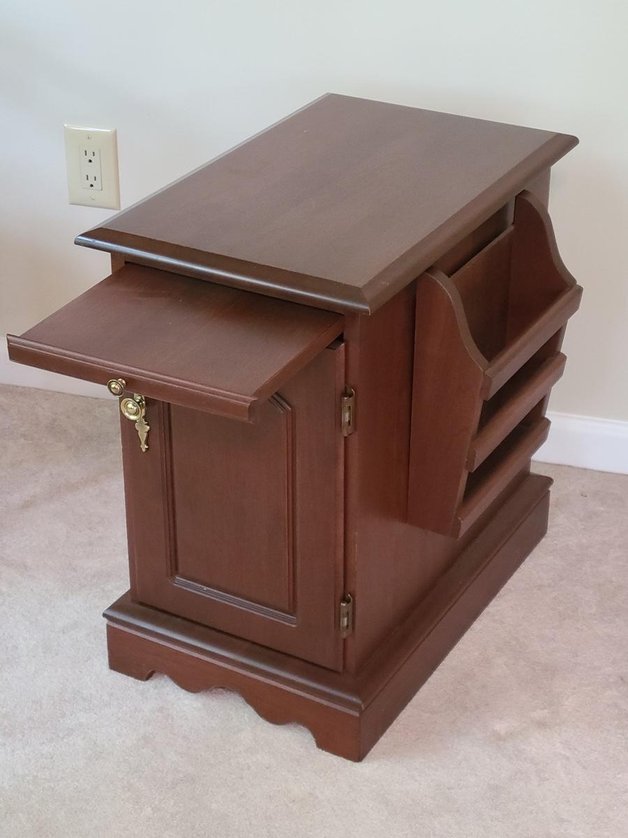 Lot 488: End Table with Magazine Rack, Slide Desk, and Storage