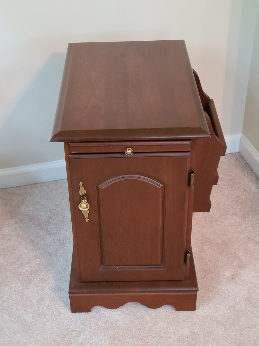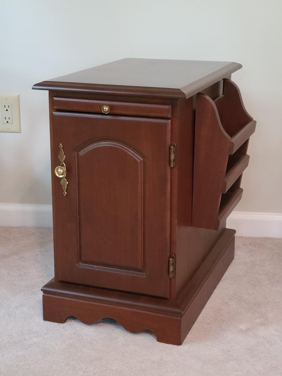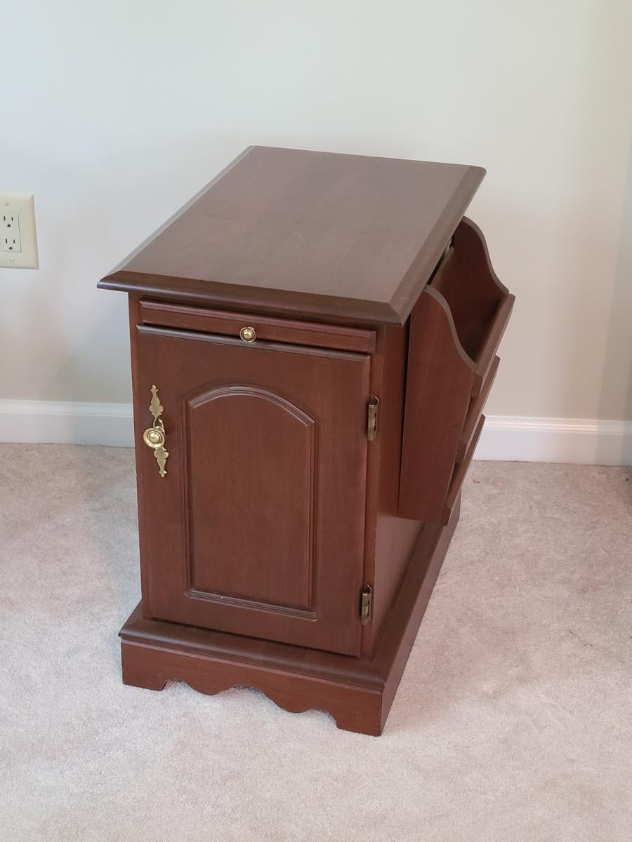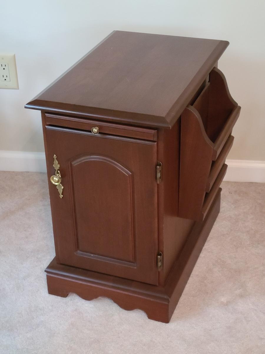 Lot 488: End Table with Magazine Rack, Slide Desk, and Storage