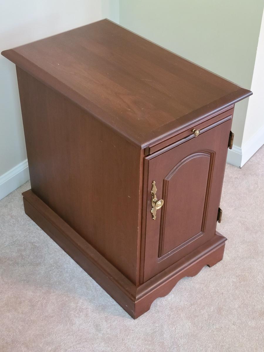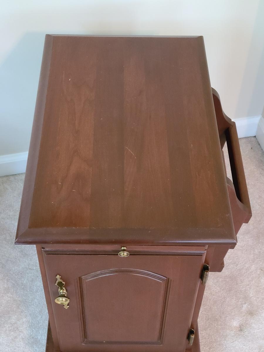 14x22x23.5 inches tall. This small side table is a perfect accent in any room. It has a magazine rack on one side, with small slide out desk, and storage inside. Not all wood. Please see all pictures as they are the best representation of the items. The pictures show condition, measurements if taken, and what is included in the lot. Due to the large amount that we photograph and the time frame, we are not always able to take measurements. All items unless noted, are pre-owned and have been used. If you purchased furniture, you must bring help. We do not allow one person to carry large furniture out on their own. Bring help, tools and a truck for the safety of our client’s homes, and your personal safety. Company policy. Thank you. There are a lot of collectibles and small items at this sale, please bring boxes and packing materials.