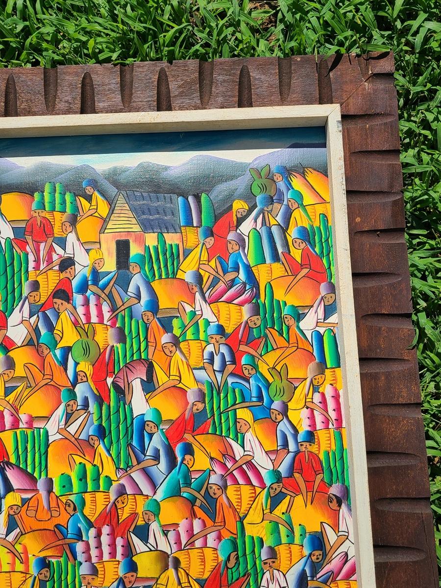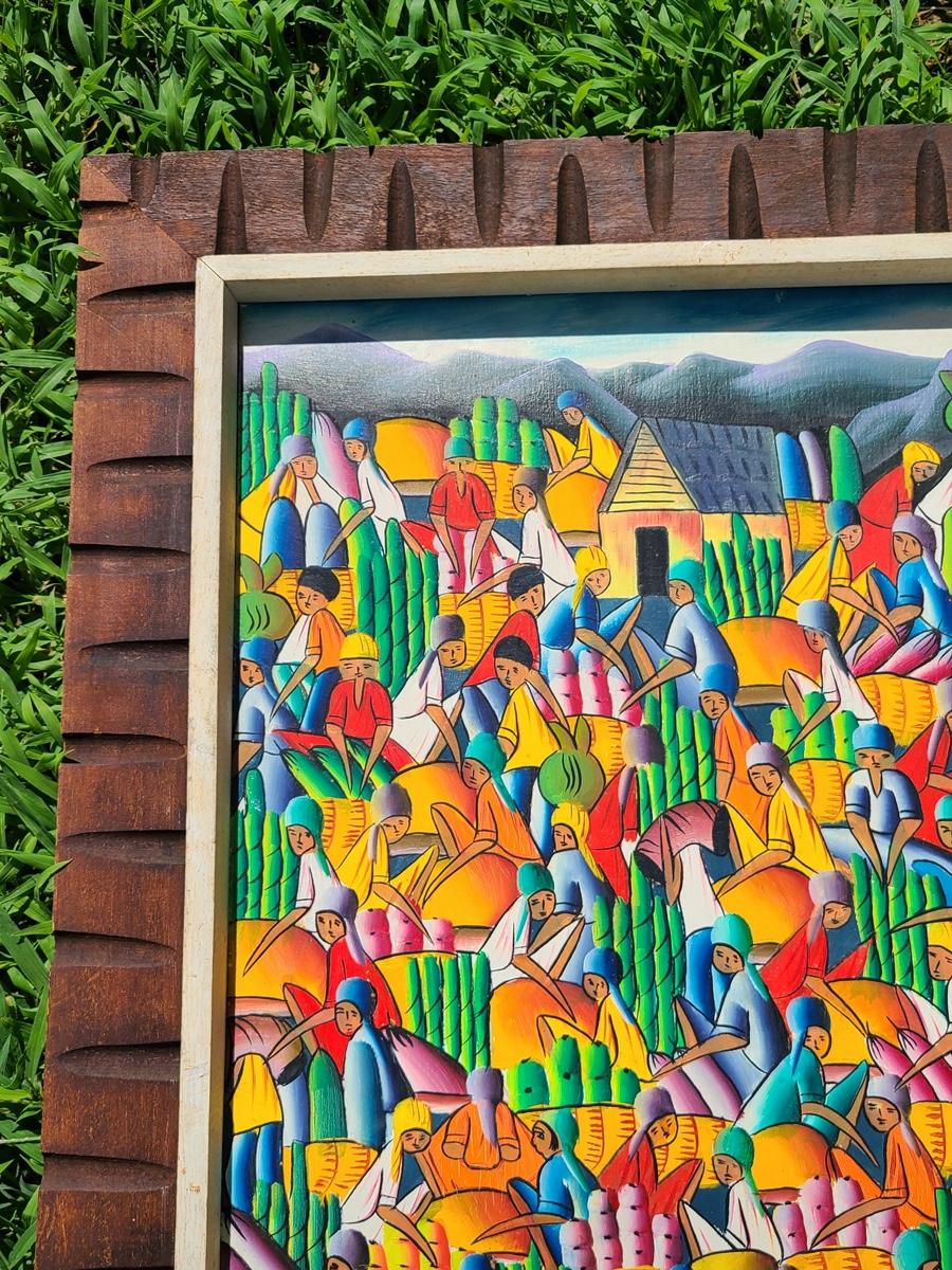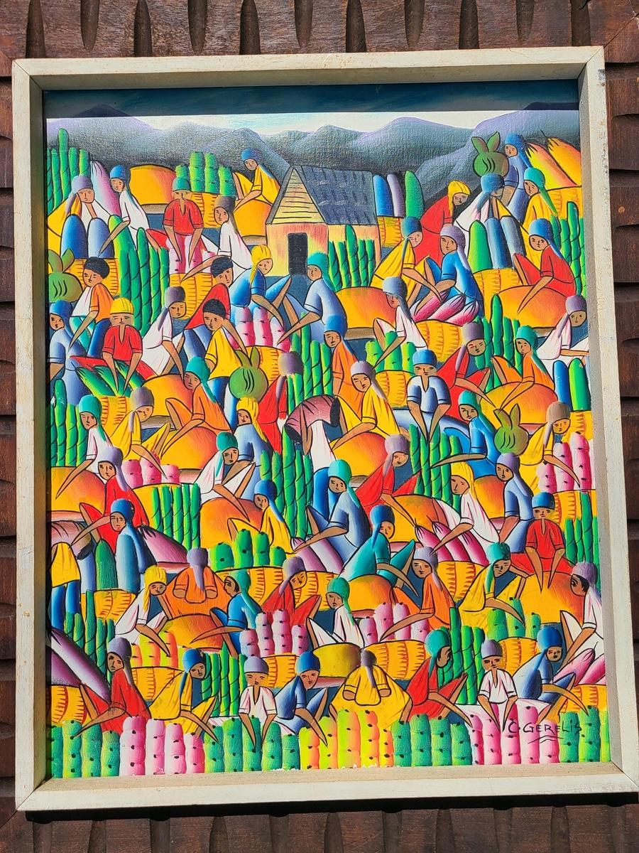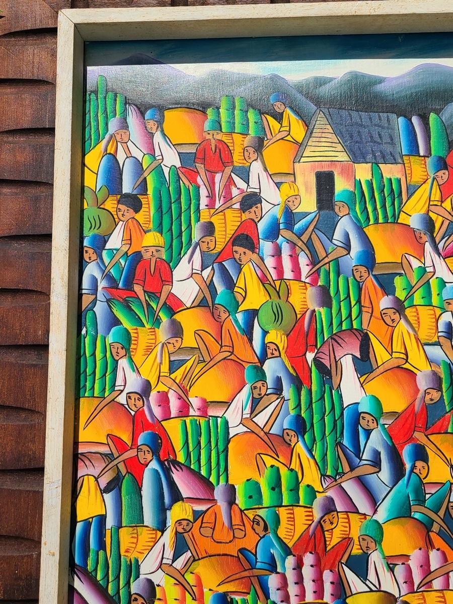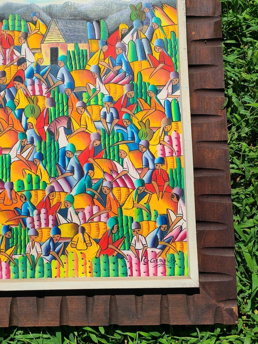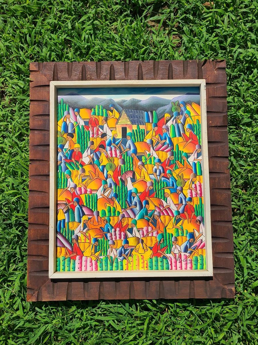 This piece is most likely from Haiti and is done by the artist C. Gerelis. Looks to be stretched canvas in vintage wood frame! Please see all pictures as they are the best representation of the items. The pictures show condition, measurements if taken, and what is included in the lot. Due to the large amount that we photograph and the time frame, we are not always able to take measurements. All items unless noted, are pre-owned and have been used. If you purchased furniture, you must bring help. We do not allow one person to carry large furniture out on their own. Bring help, tools and a truck for the safety of our client’s homes, and your personal safety. Company policy. Thank you.