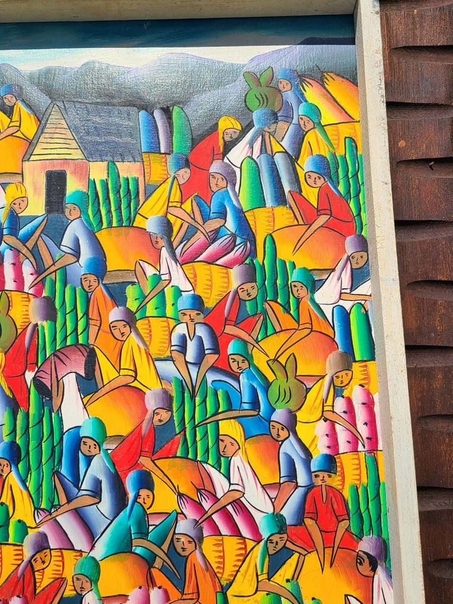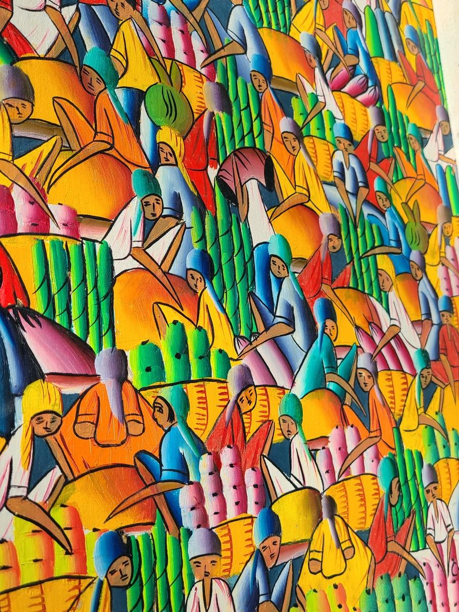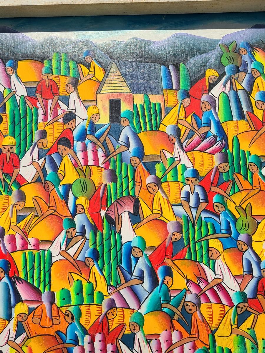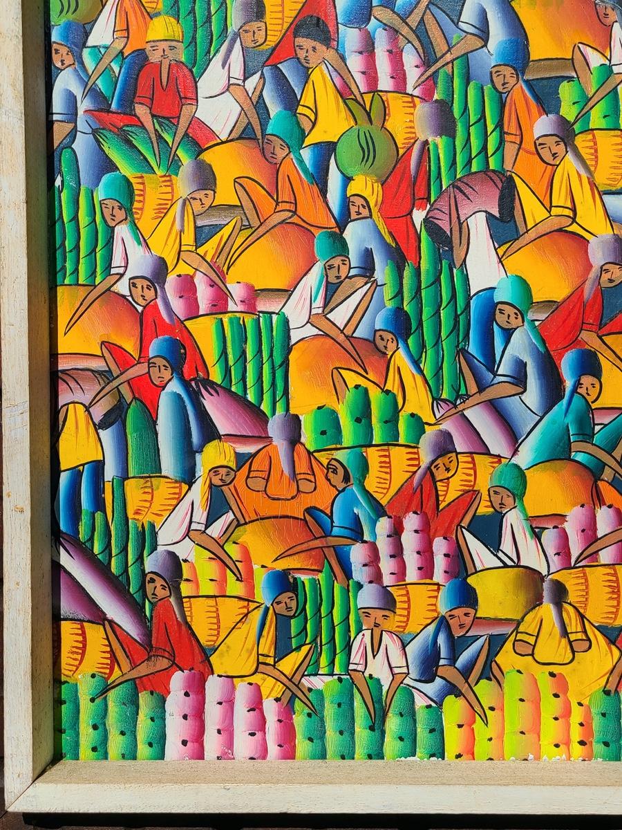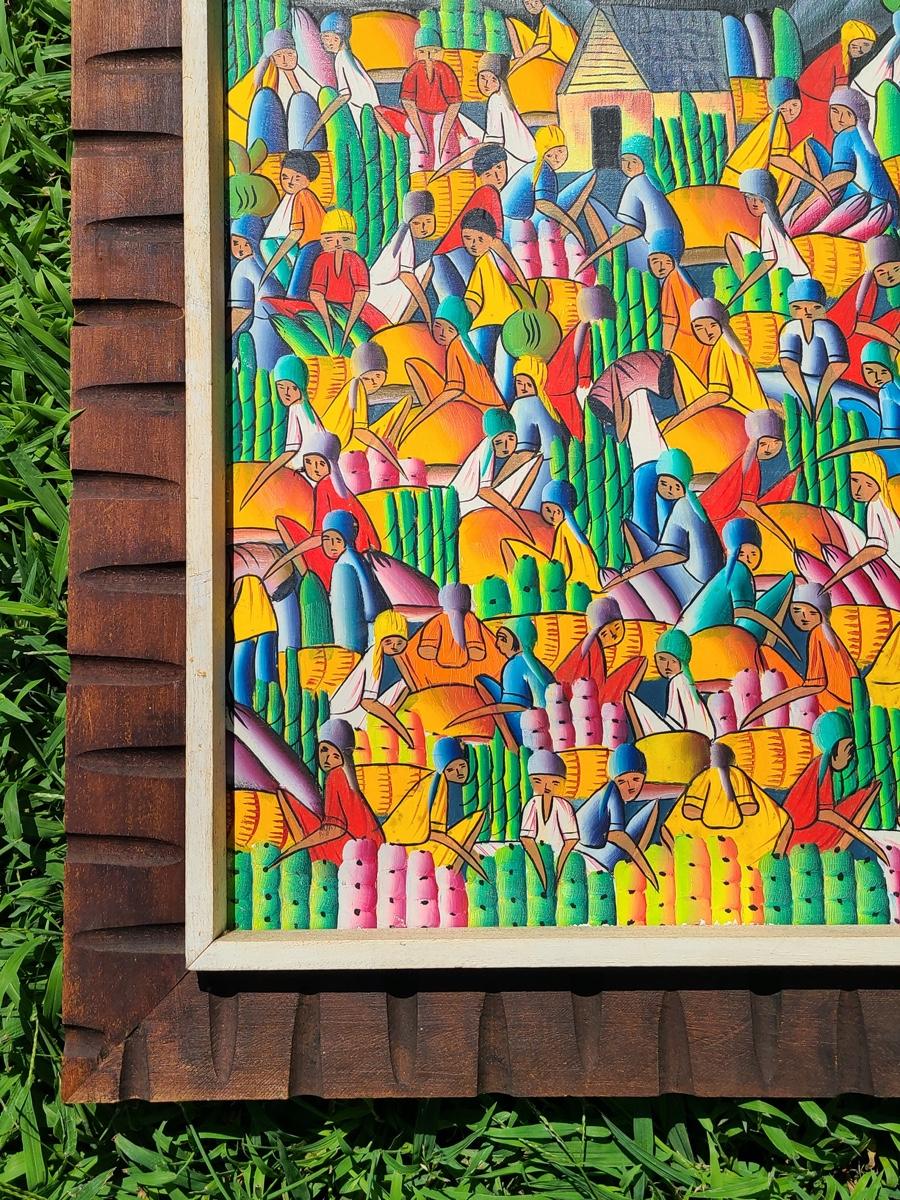 This piece is most likely from Haiti and is done by the artist C. Gerelis. Looks to be stretched canvas in vintage wood frame! Please see all pictures as they are the best representation of the items. The pictures show condition, measurements if taken, and what is included in the lot. Due to the large amount that we photograph and the time frame, we are not always able to take measurements. All items unless noted, are pre-owned and have been used. If you purchased furniture, you must bring help. We do not allow one person to carry large furniture out on their own. Bring help, tools and a truck for the safety of our client’s homes, and your personal safety. Company policy. Thank you.