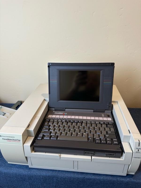 vintage, Texas instruments, travel, mate, 4000 E laptop and docking station