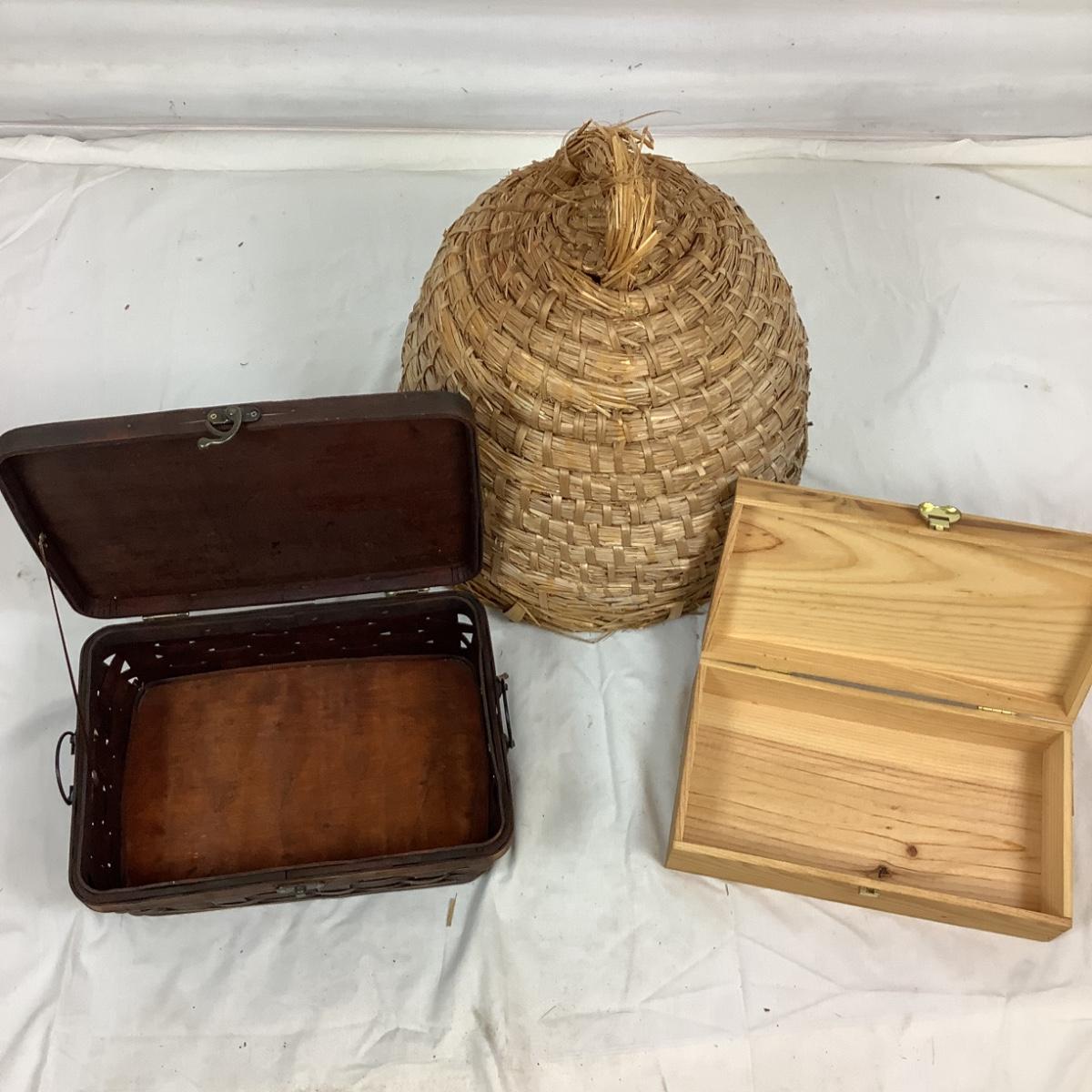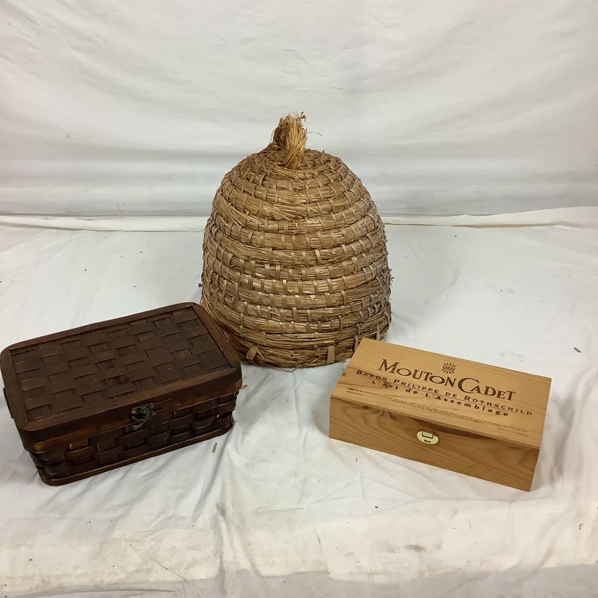 Lot. 6194. Vintage Bohemian Beehive Bee Skep Straw Basket and more
