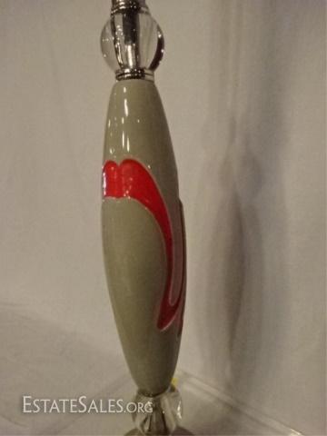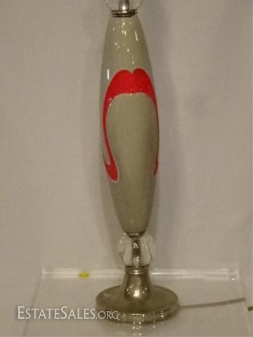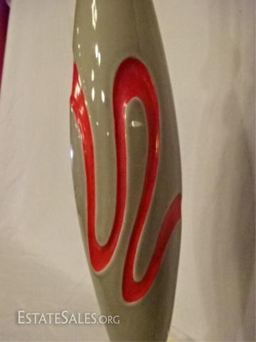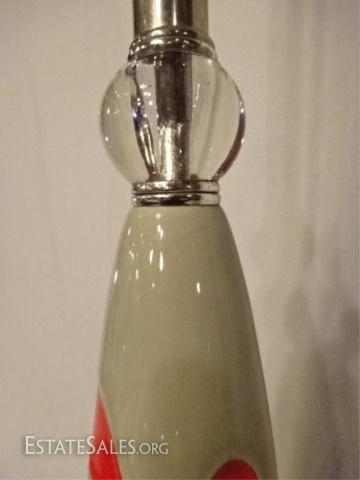 , CLEAR ACRYLIC ACCENTS WITH GRAY AND ORANGE PAINTED BODY, SQUARE CLEAR ARCRYLIC BASE, VERY GOOD CONDITION, APPROX 58"H SKU387.64