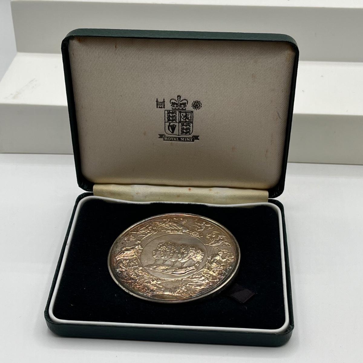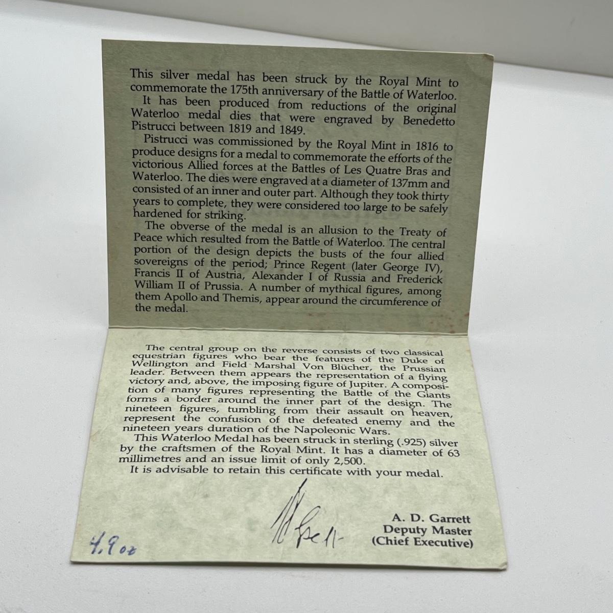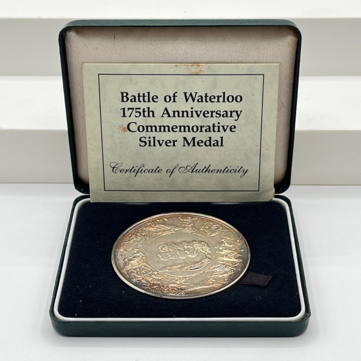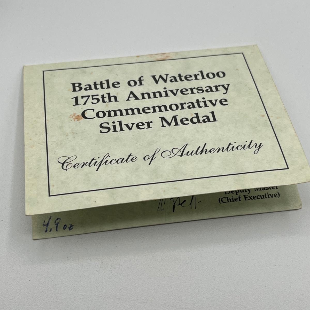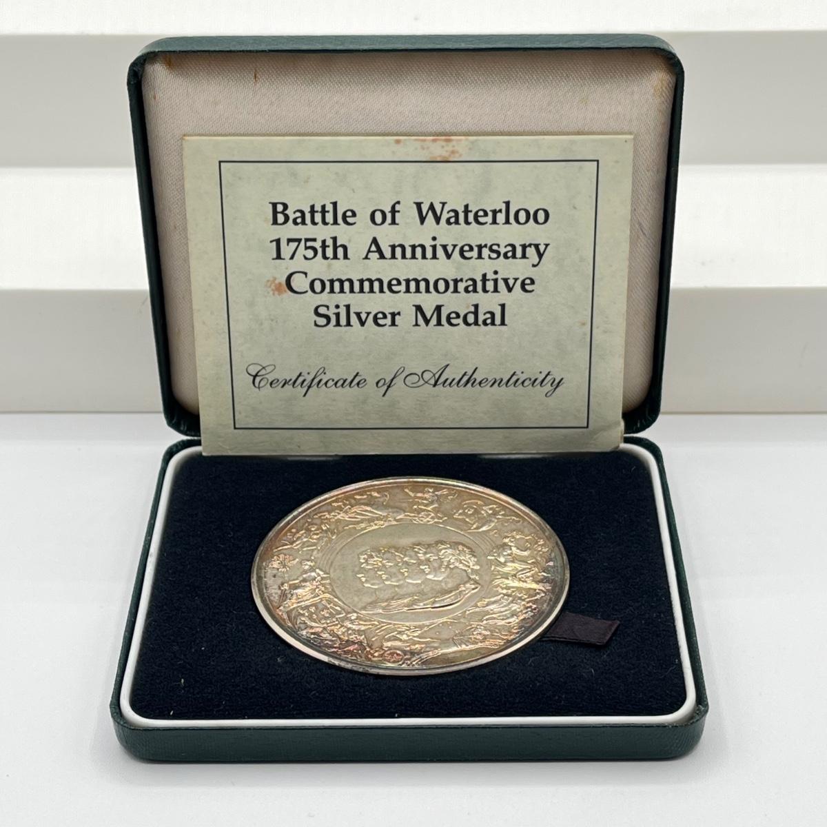 LOT 61F: Battle of Waterloo 175th Anniversary Commemorative 152-Gram Sterling Silver Medal - The Royal Mint - w/ COA