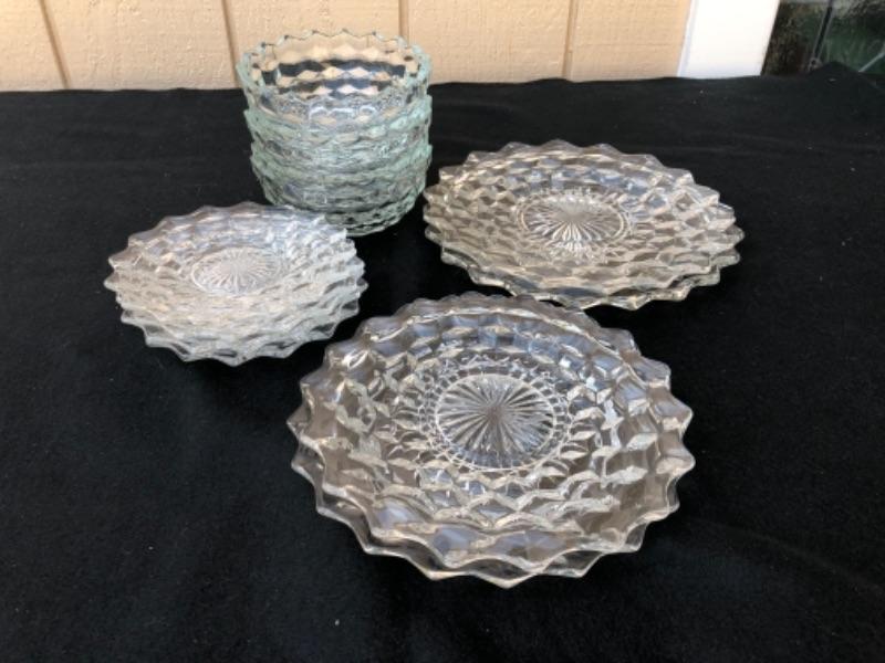 Lot 61L.  Fostoria American Serving dishes: 3 small bowls, 4 bread and butter plates, 2 salad plates, 2 dessert plates “” $15