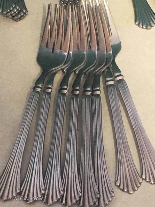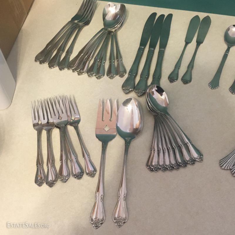 Five Piece Rogers Stainless with Minimum Six Place Setting and Two Service.