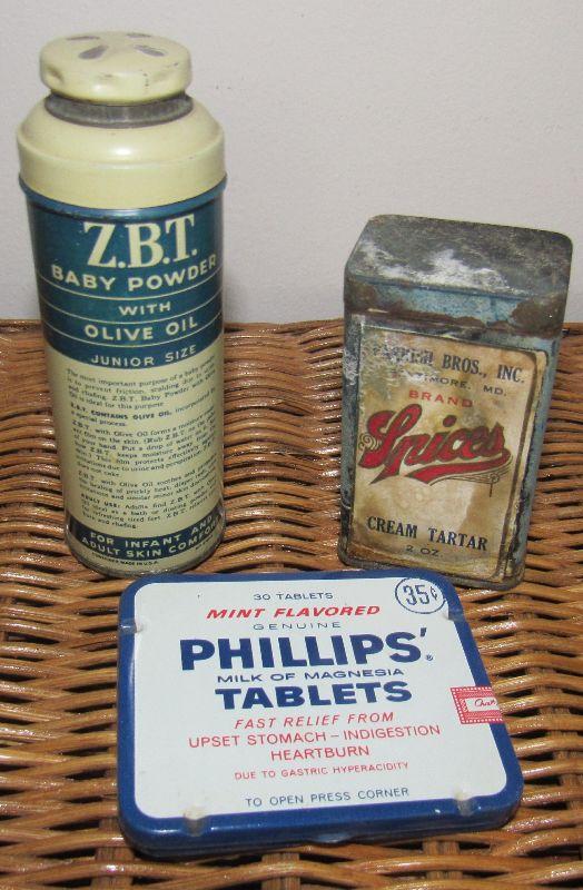 Lot 62- Vintage Z.B.T Baby Powder, Vintage Spices and vintage Phillips Tablets -