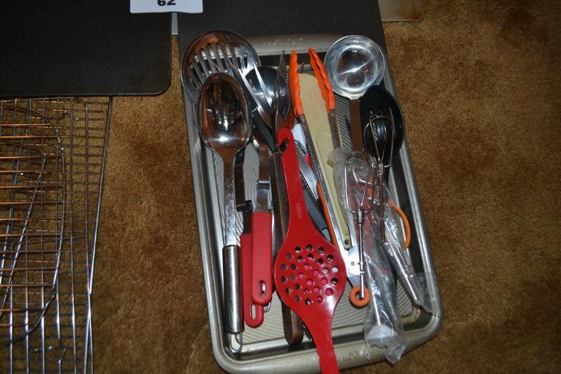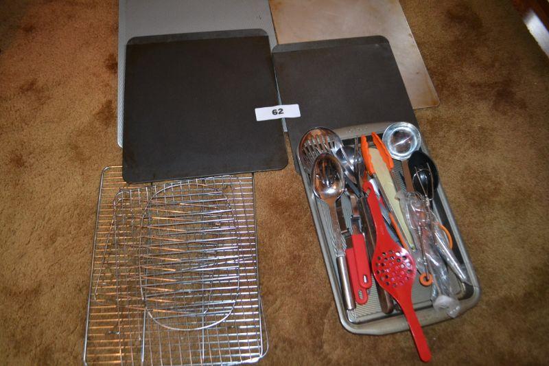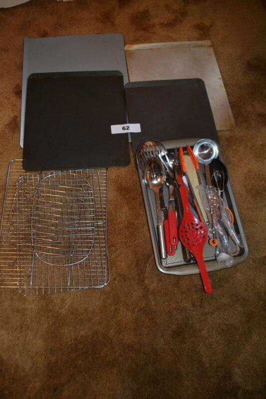 LOT 62 KITCHEN TOOLS AND COOKIE SHEETS