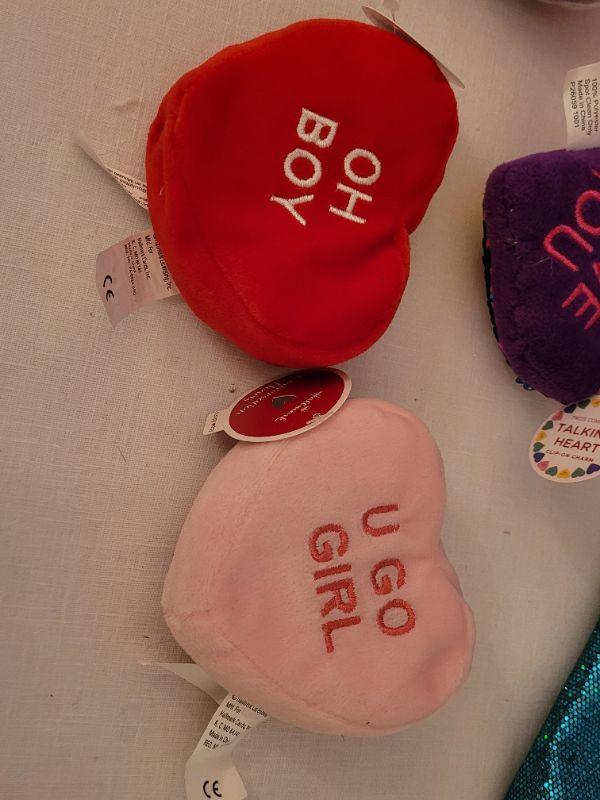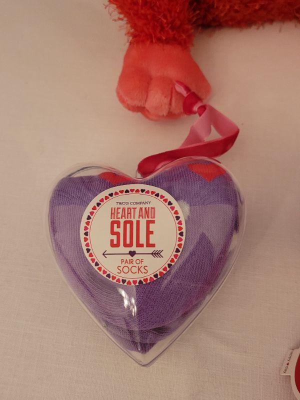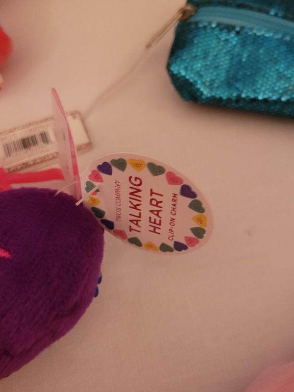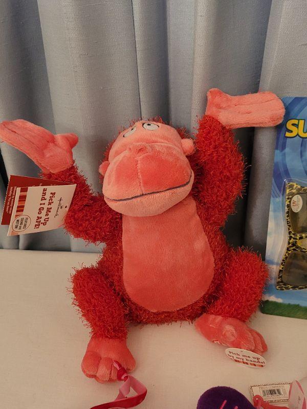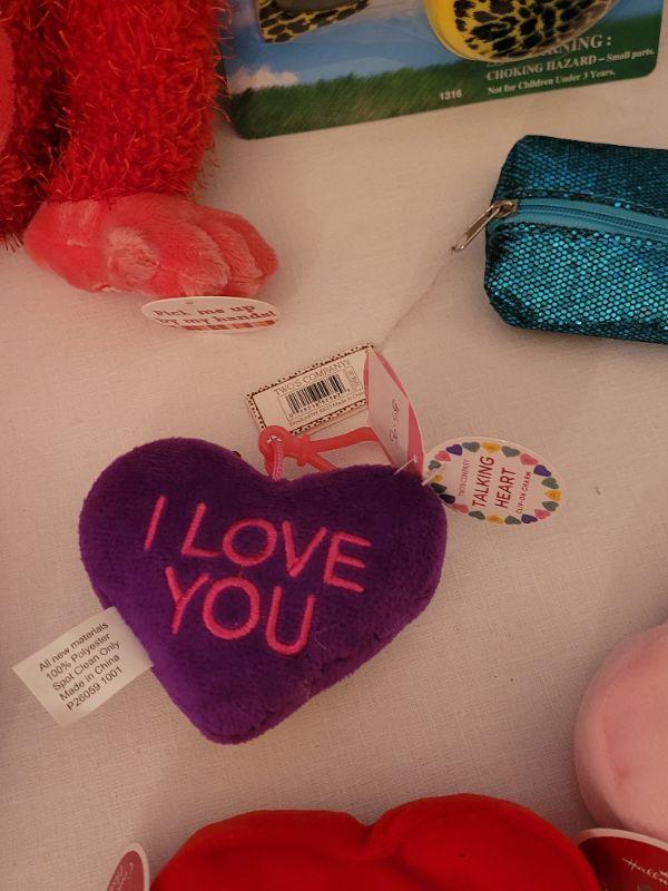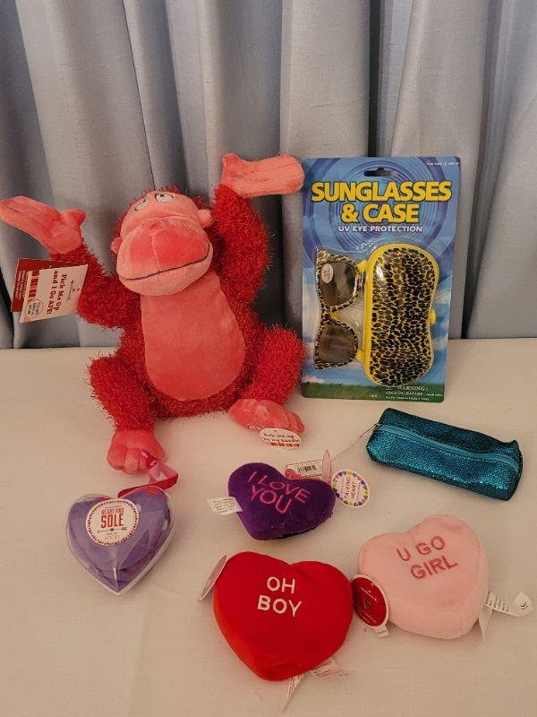 Lot 62. New Animated Valentine's Ape, Recordable Heart Keychain, Socks, Make Up Brushes and Pouch, Heart BeaN bags, Sunglasses & Case