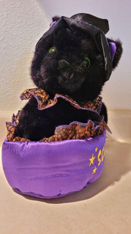 Lot 62: New Halloween 13" x 12" Head Twisting SCAREDY CAT Motion and Sound Deco - WORKS