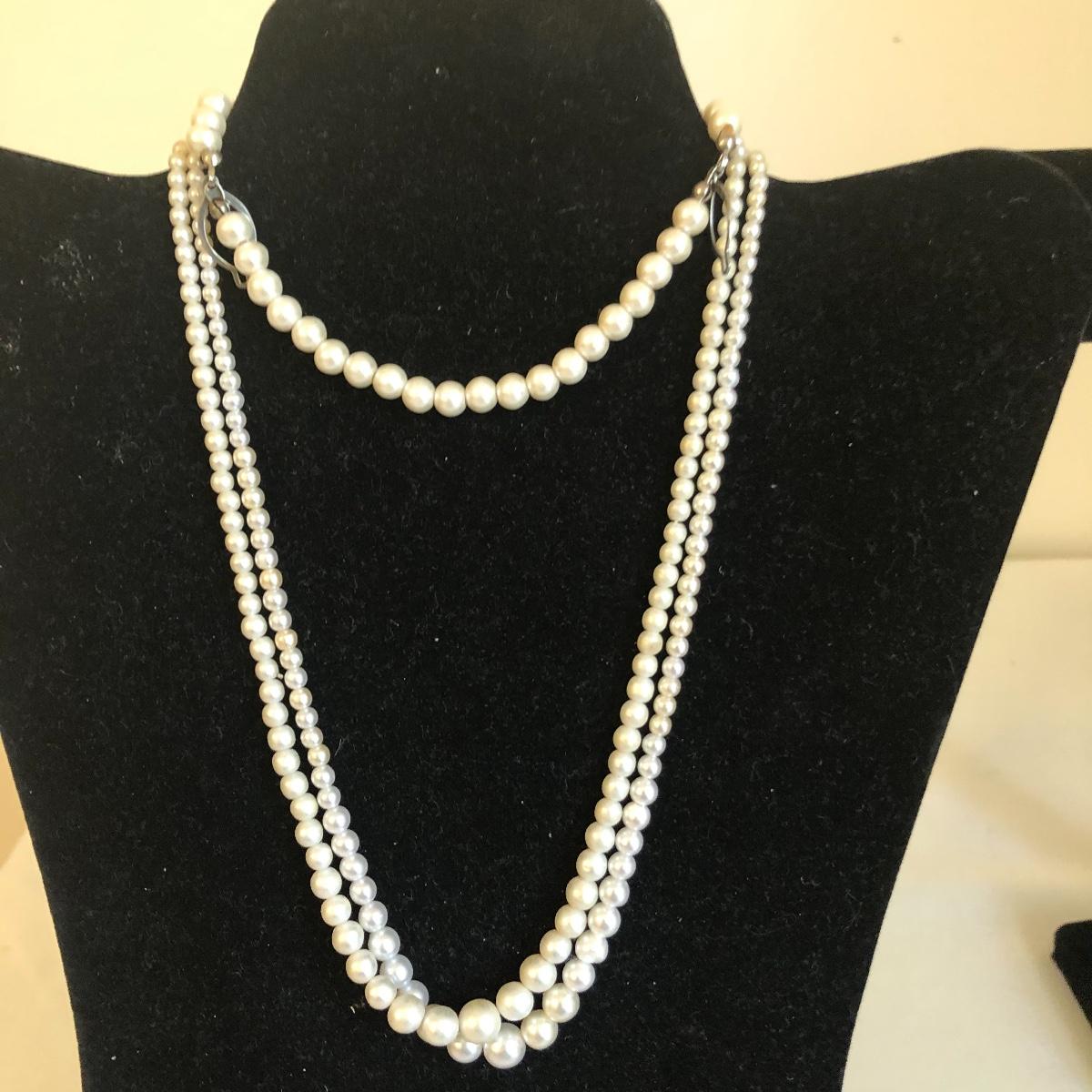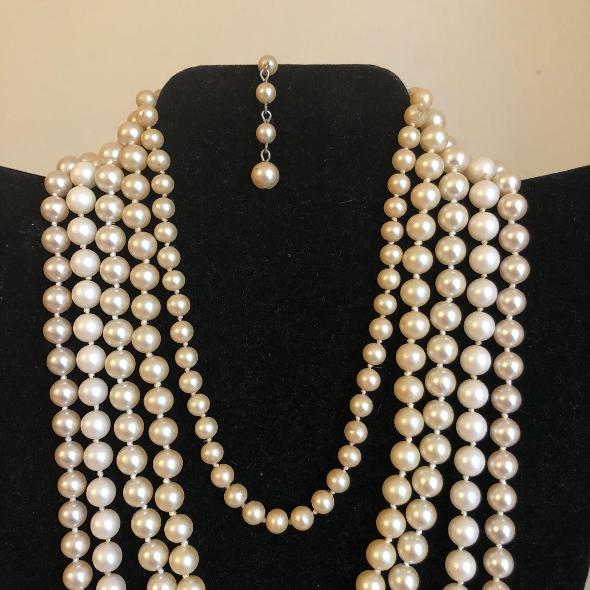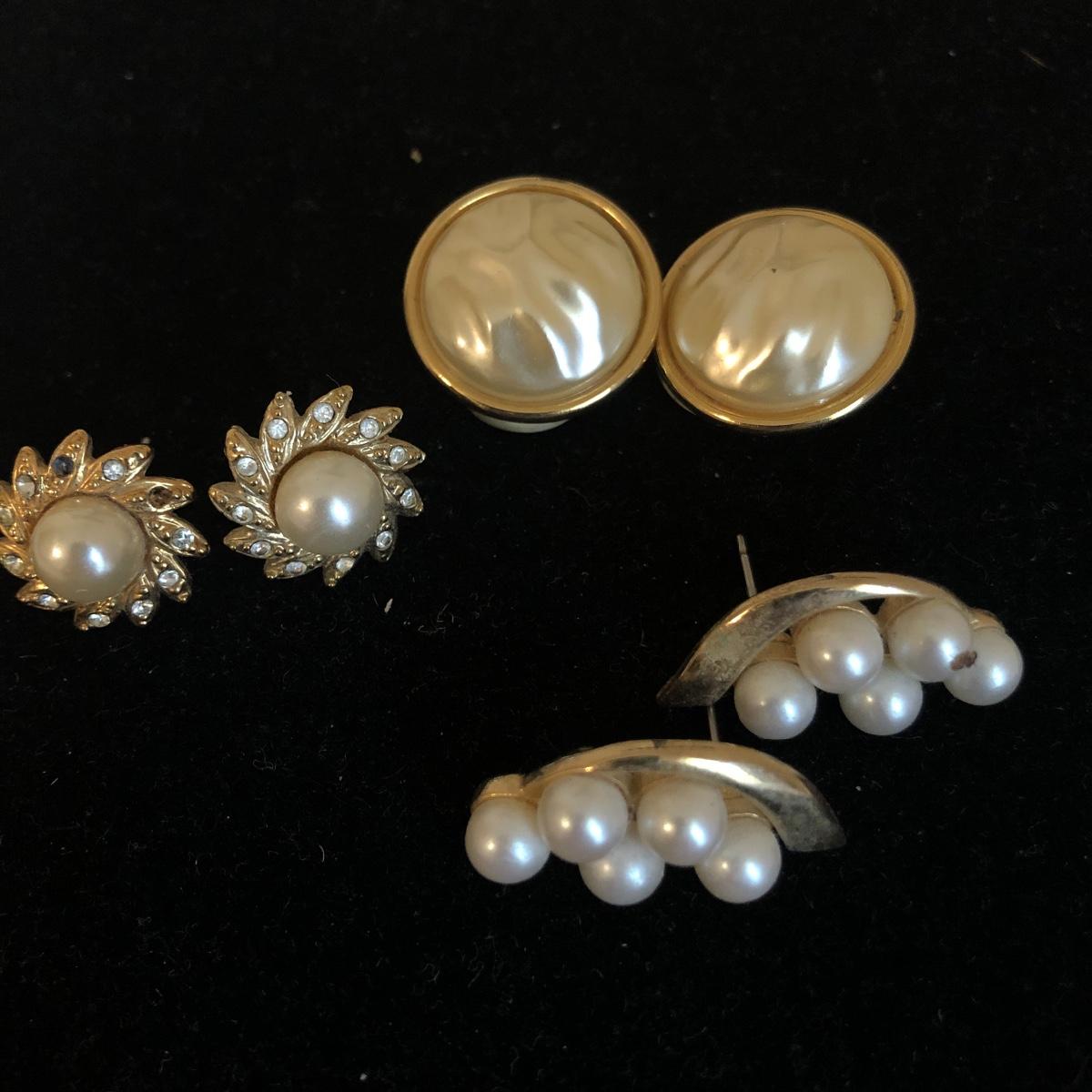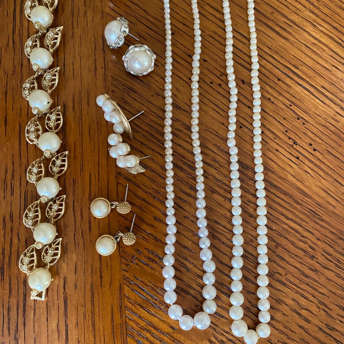 Adorn yourself with this large lot of pearls that includes earrings, necklaces and bracelet. We cannot guarantee that any pearls are genuine but a couple could possibly be real, in particular the longest necklace pictured last. The majority of the earrings are post with 2 pairs of clip-one.