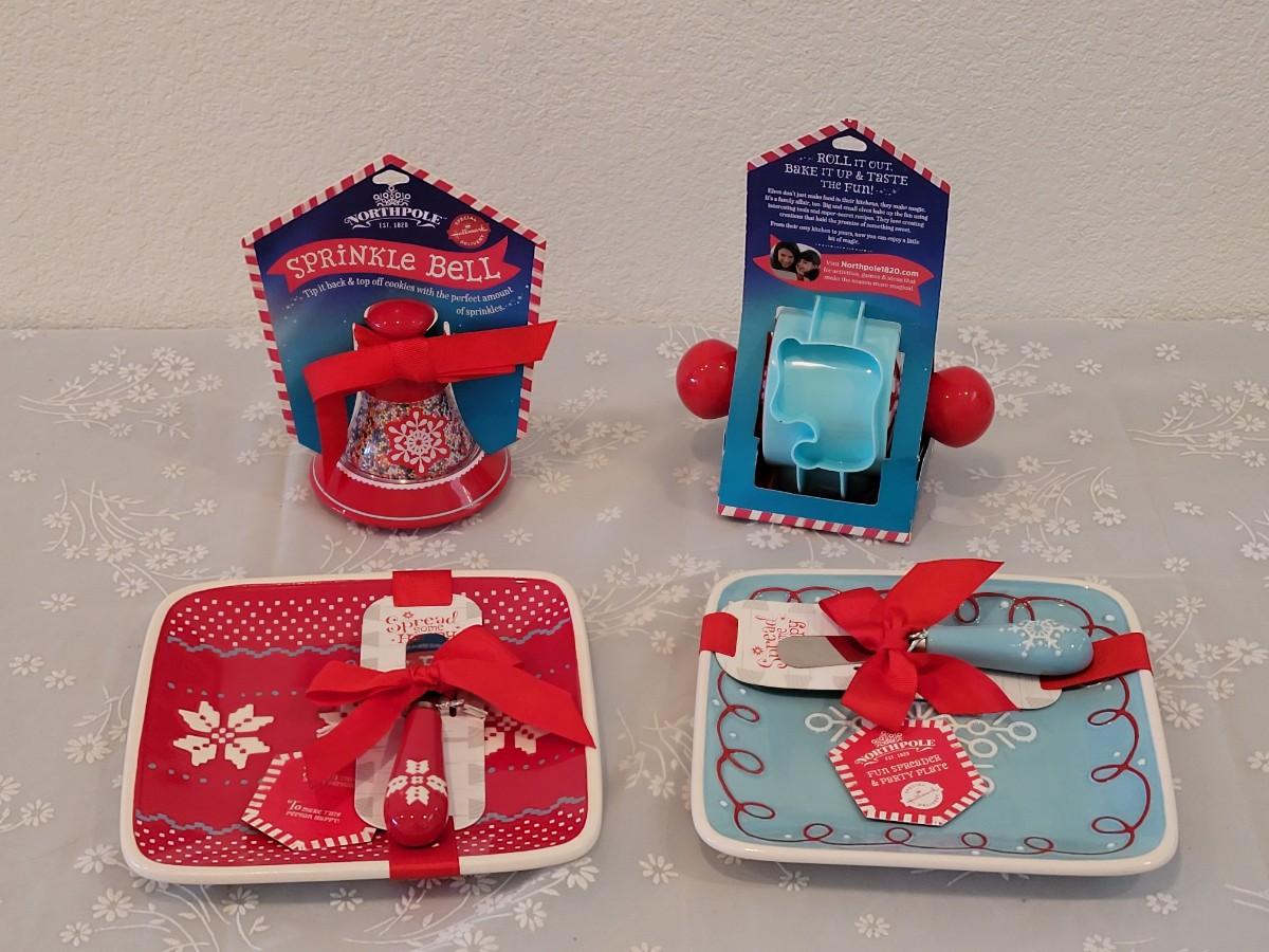 Lot 62: (2) Holiday Plates with Spreaders, Sprinkle Bell and Cookie Cuttet Wheel