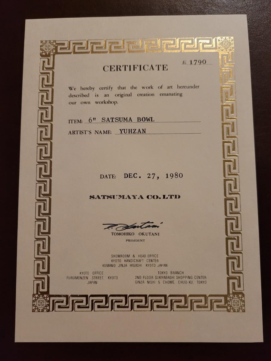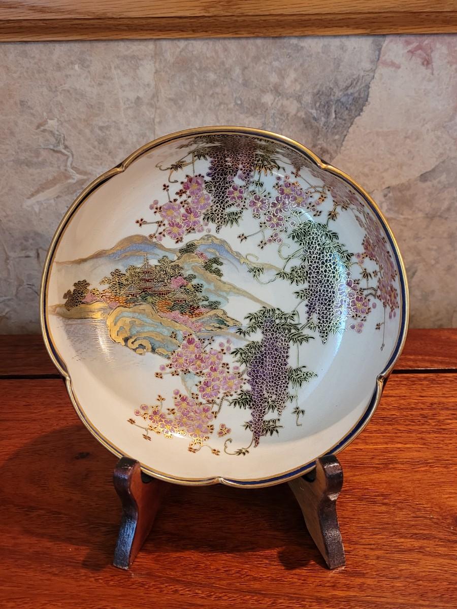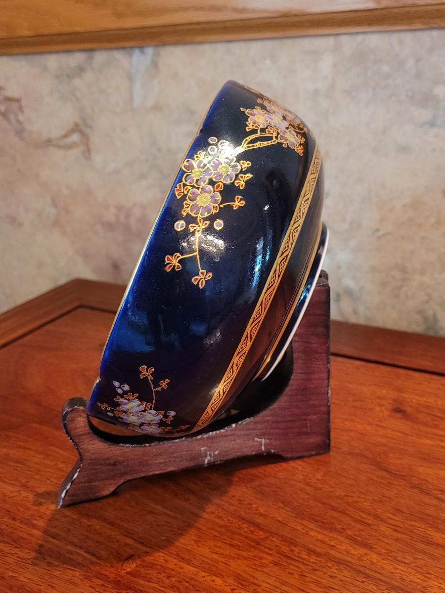 Lot 62: 6" Satsuma Blue Floral Bowl by YUHZAN with Certificate &Stand