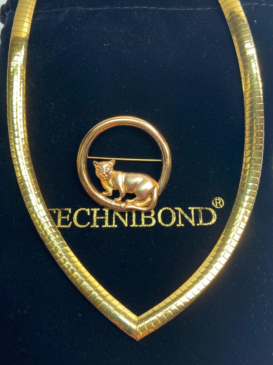 Lot 62: Technibond 18-kt vermeil Choker & Cat Pin