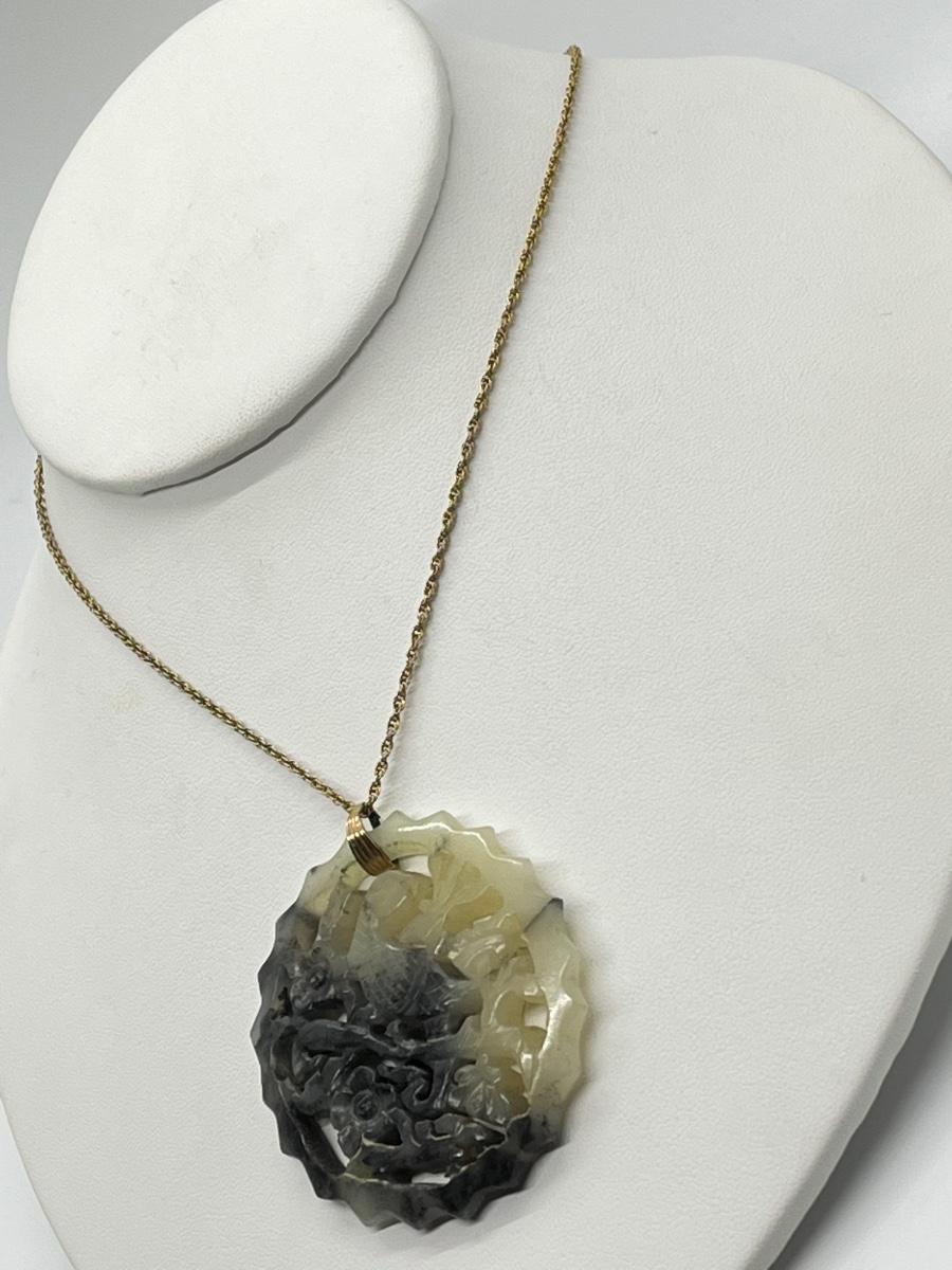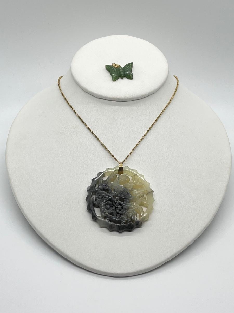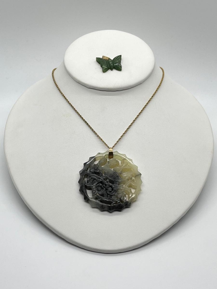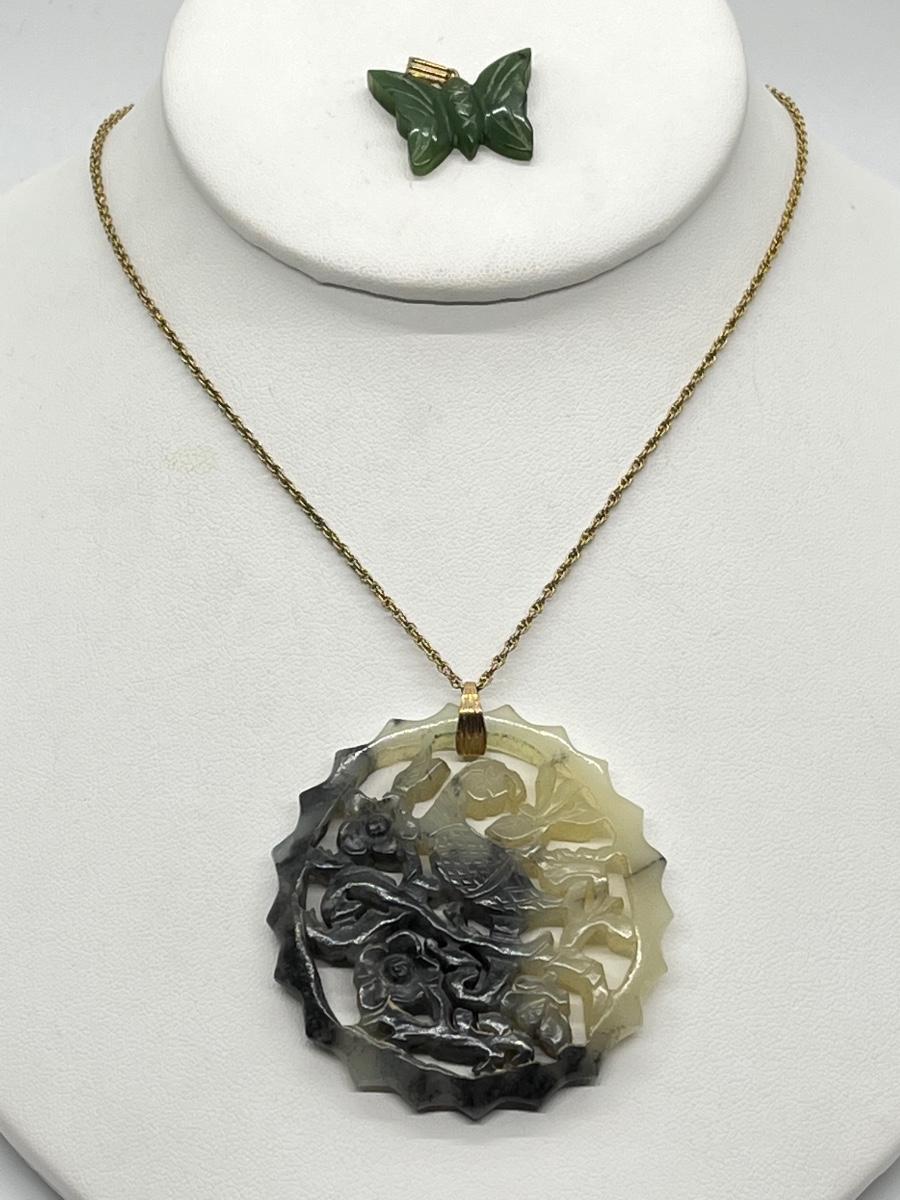 LOT 62: Goldfill Chain (24") with Two Jade Pendants