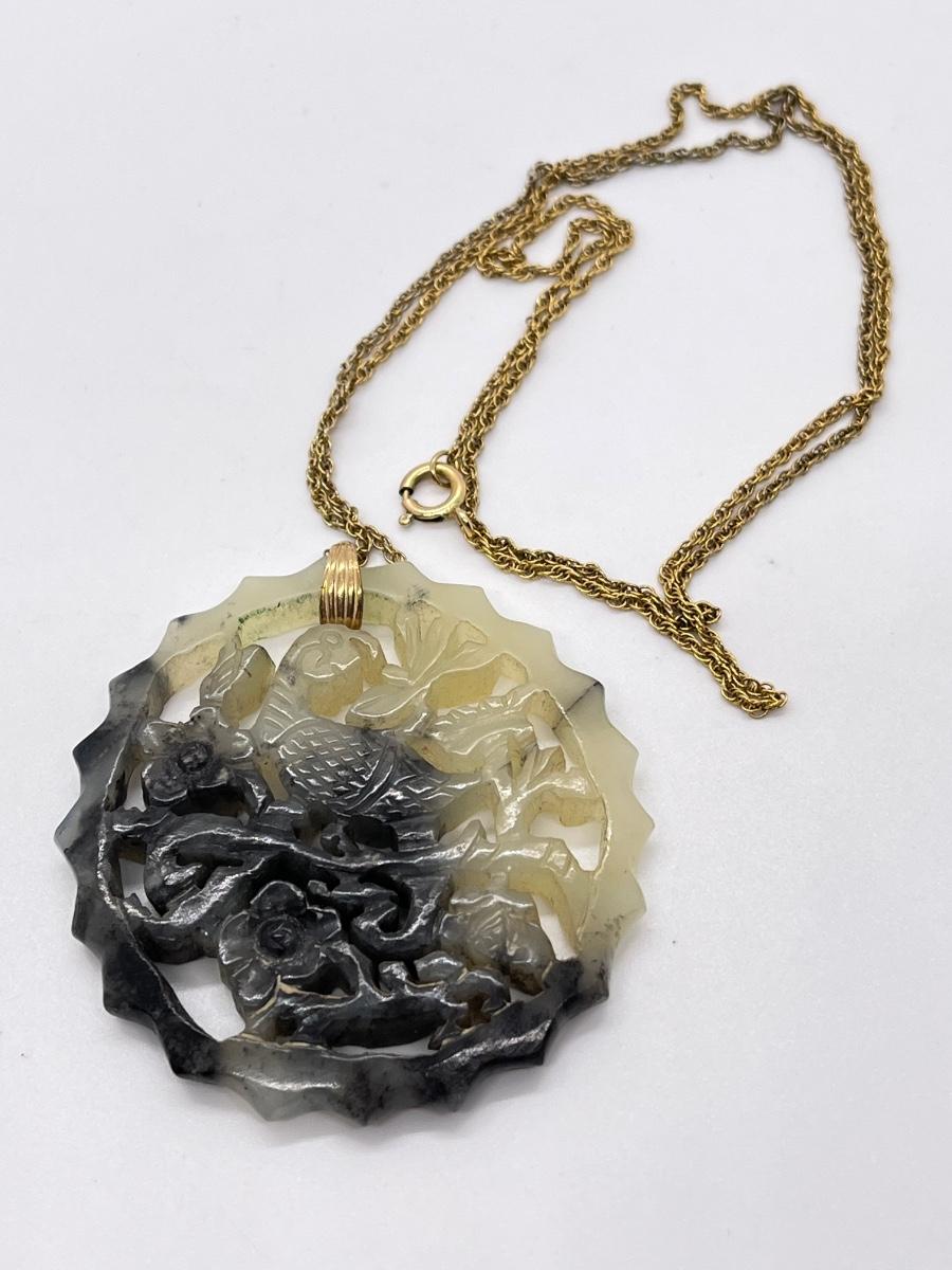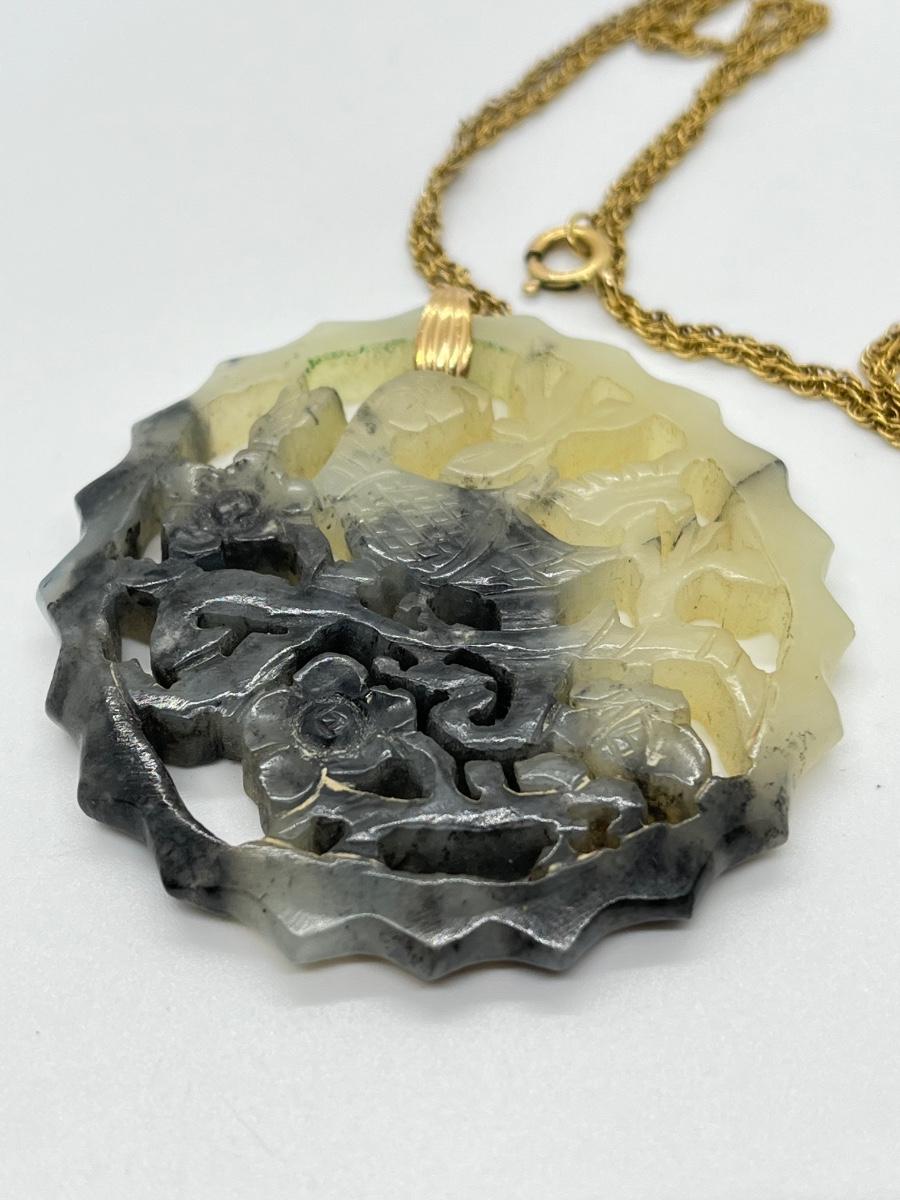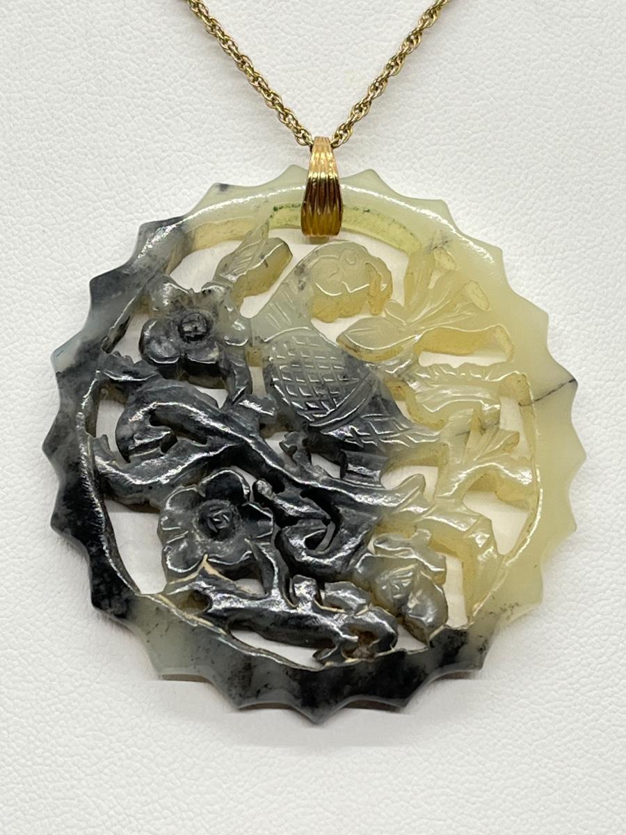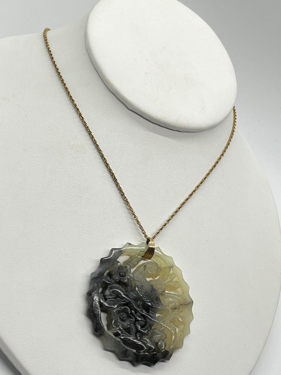 LOT 62: Goldfill Chain (24") with Two Jade Pendants