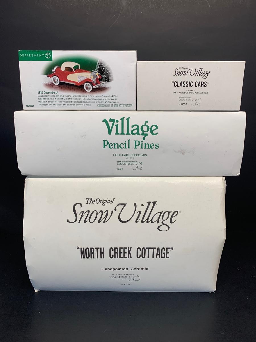 Lot 62:R: Dept. 56 North Creek Cottage, Pencil Pines & More w/Boxes