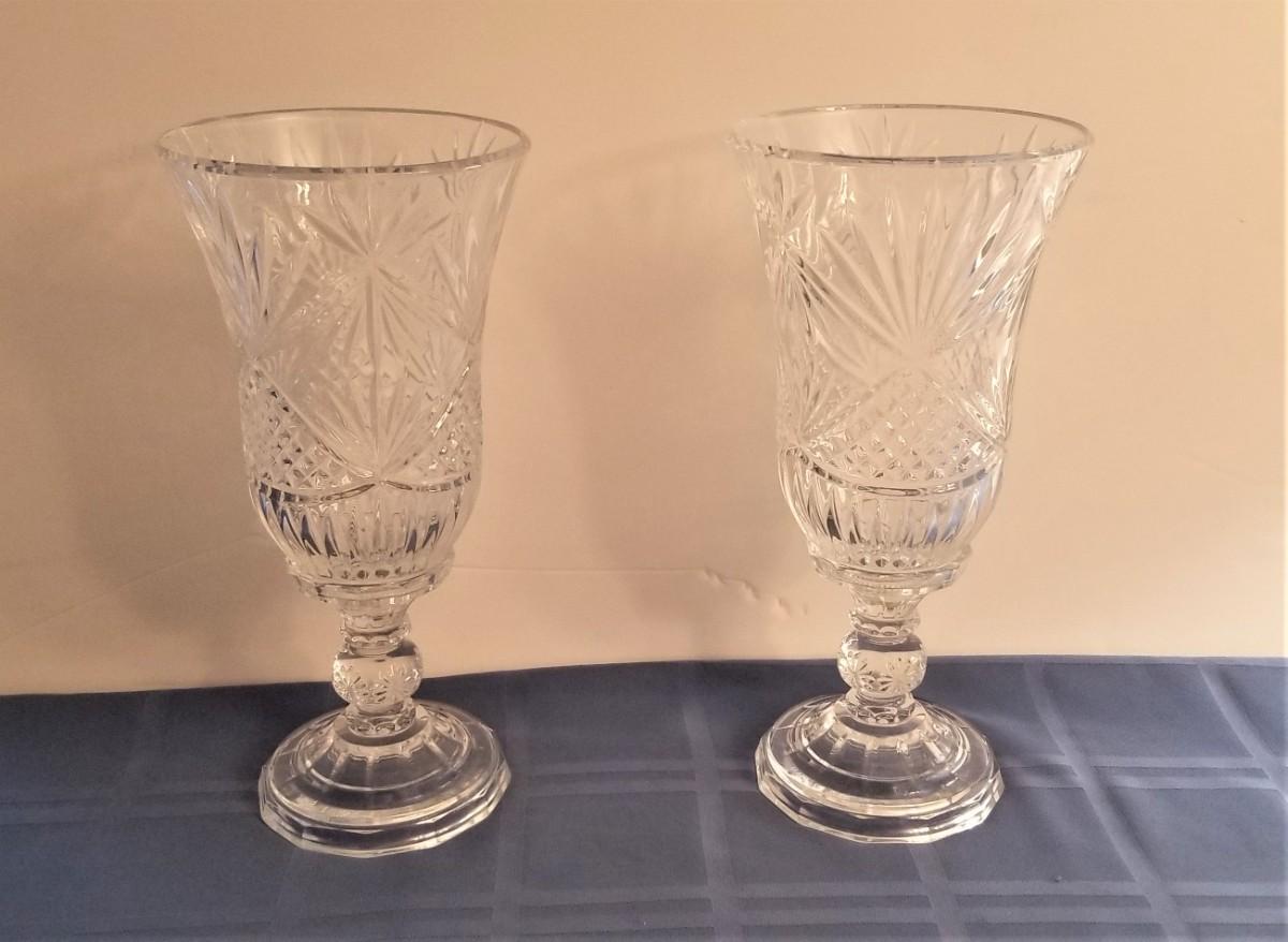 These are really beautiful and in excellent condition - matched pair of Crystal Candle Lamps - they are 6" across and 12.5" tall. Great on a mantle or dining table - real beauties.