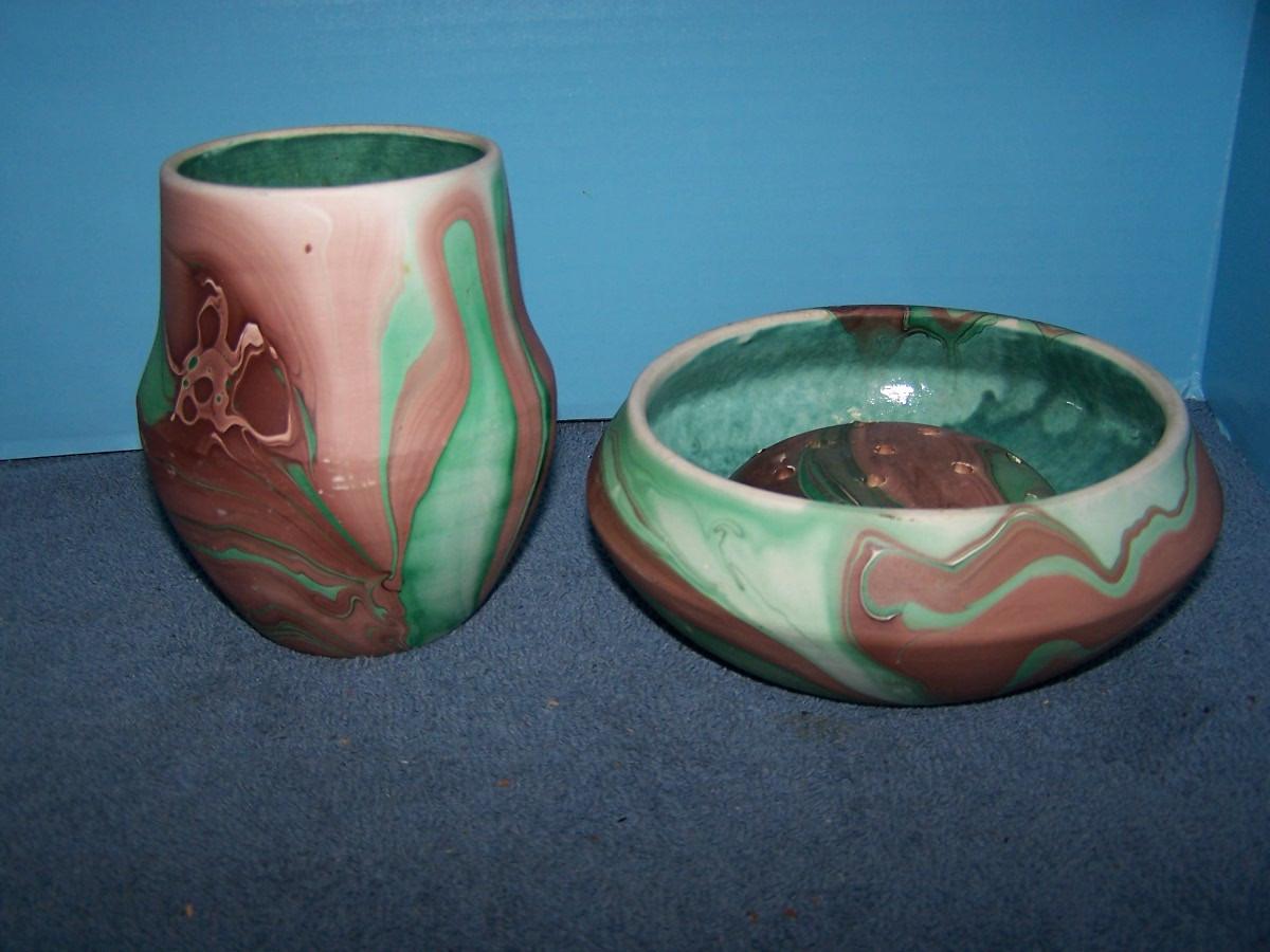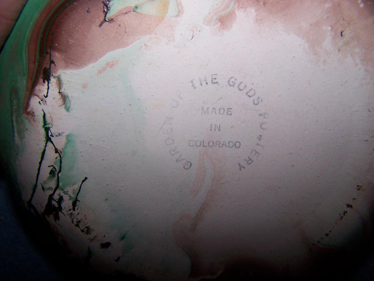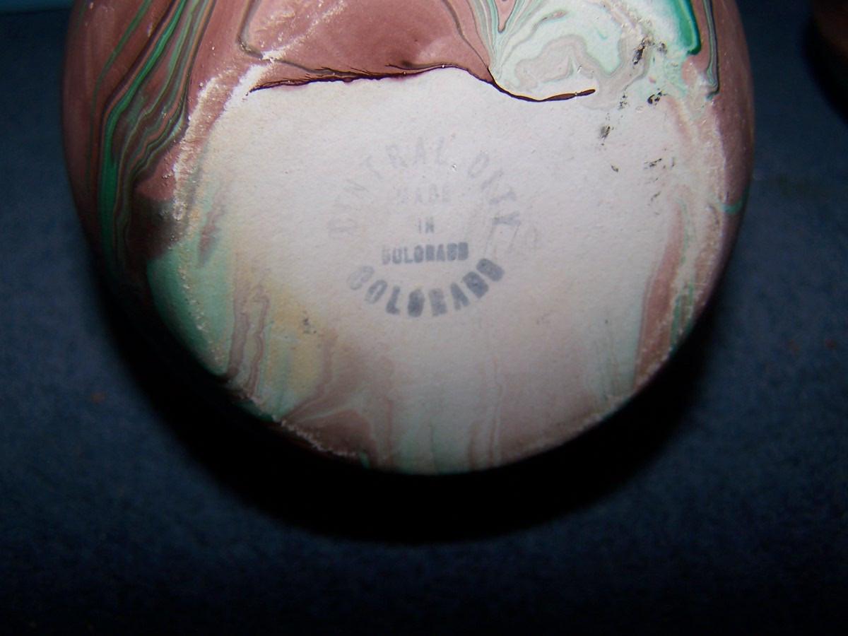 THIS IS BEAUTIFUL VINTAGE MID CENTURY COLORADO POTTERY!!! FLOWER FROG/BOWL IS GARDEN OF THE GODS, LIGHT WEAR/RUBS.. VASE IS CENTRAL CITY, 5'' TALL, LIGHT WEAR/RUBS..