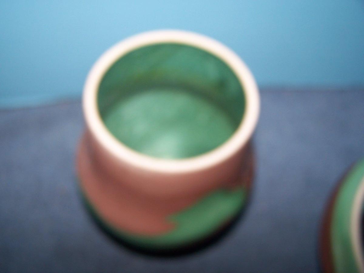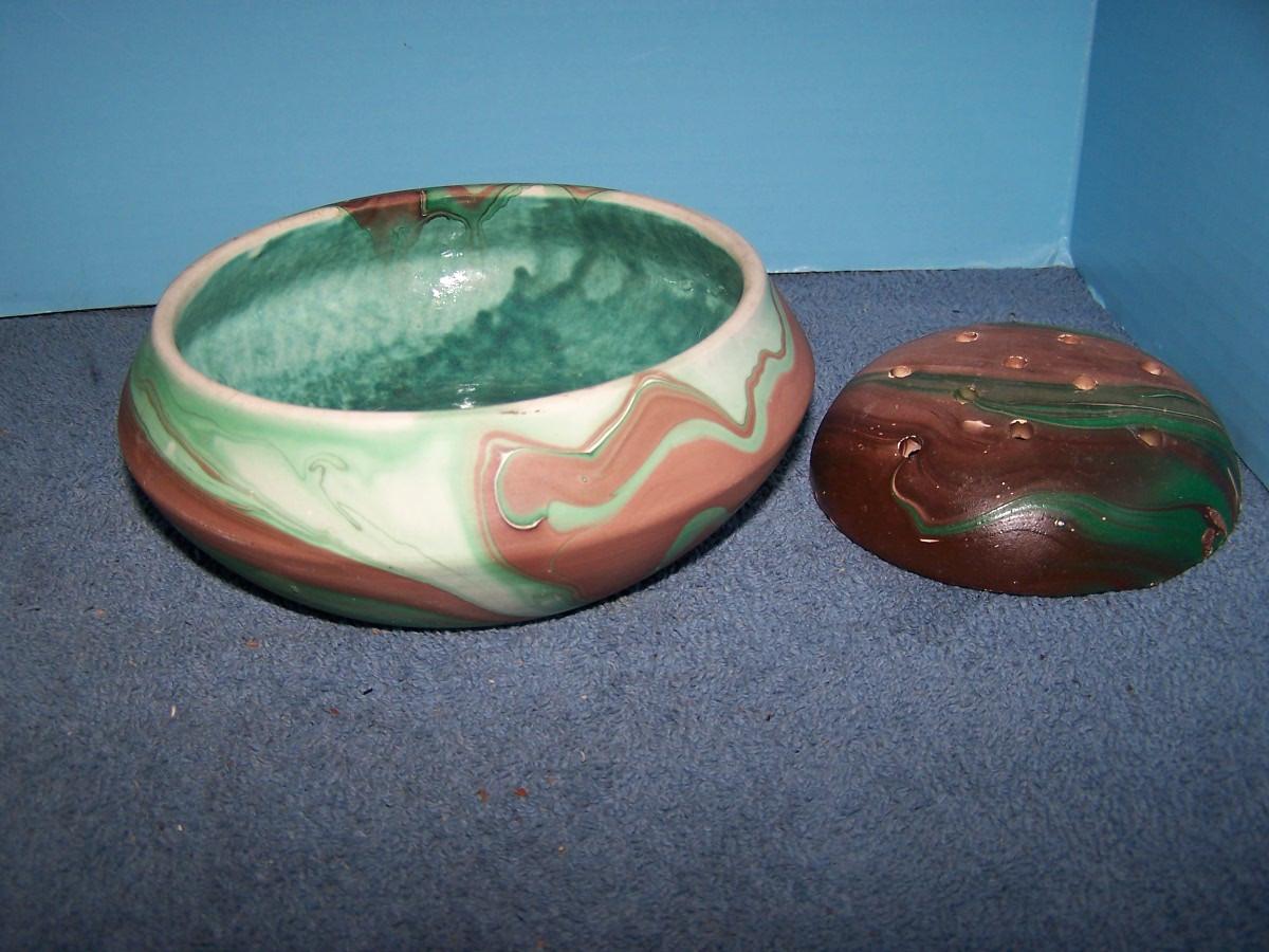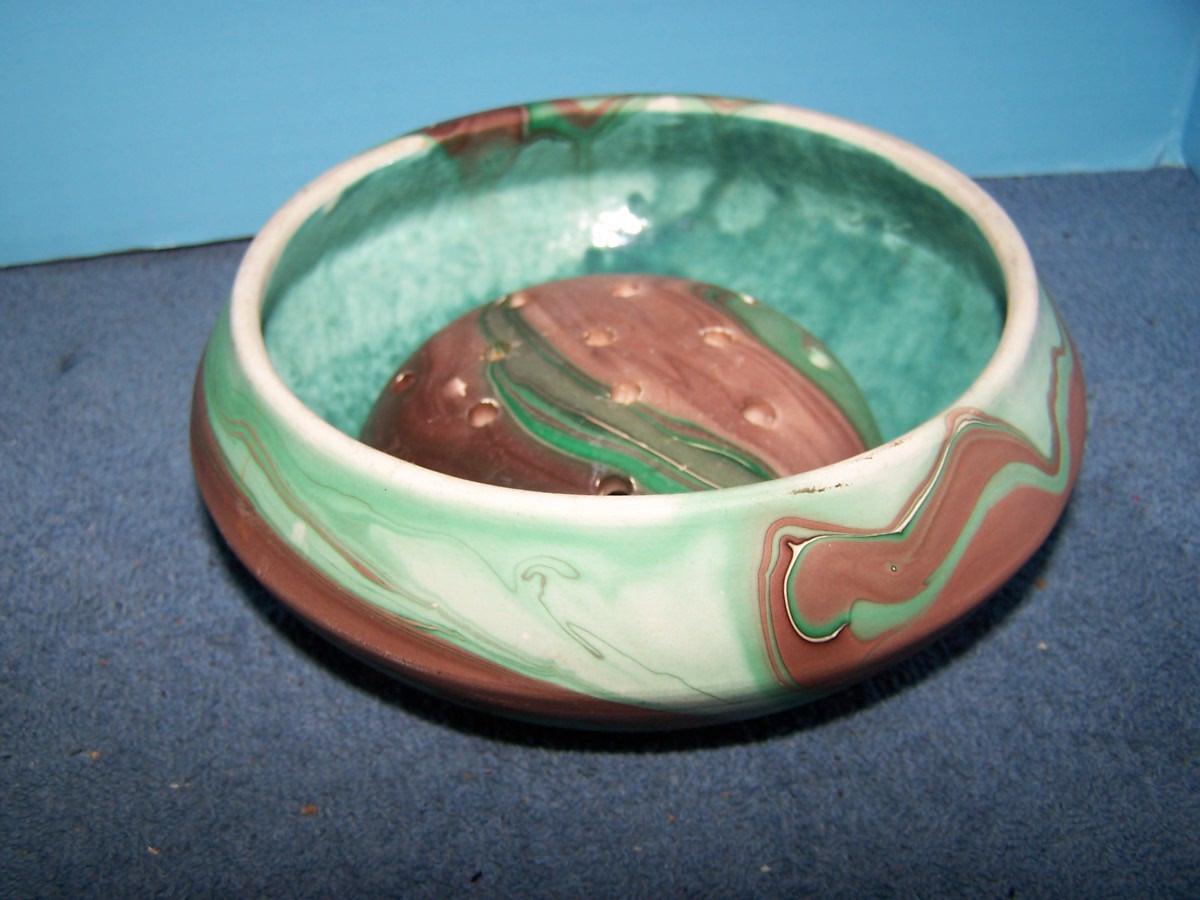 THIS IS BEAUTIFUL VINTAGE MID CENTURY COLORADO POTTERY!!! FLOWER FROG/BOWL IS GARDEN OF THE GODS, LIGHT WEAR/RUBS.. VASE IS CENTRAL CITY, 5'' TALL, LIGHT WEAR/RUBS..