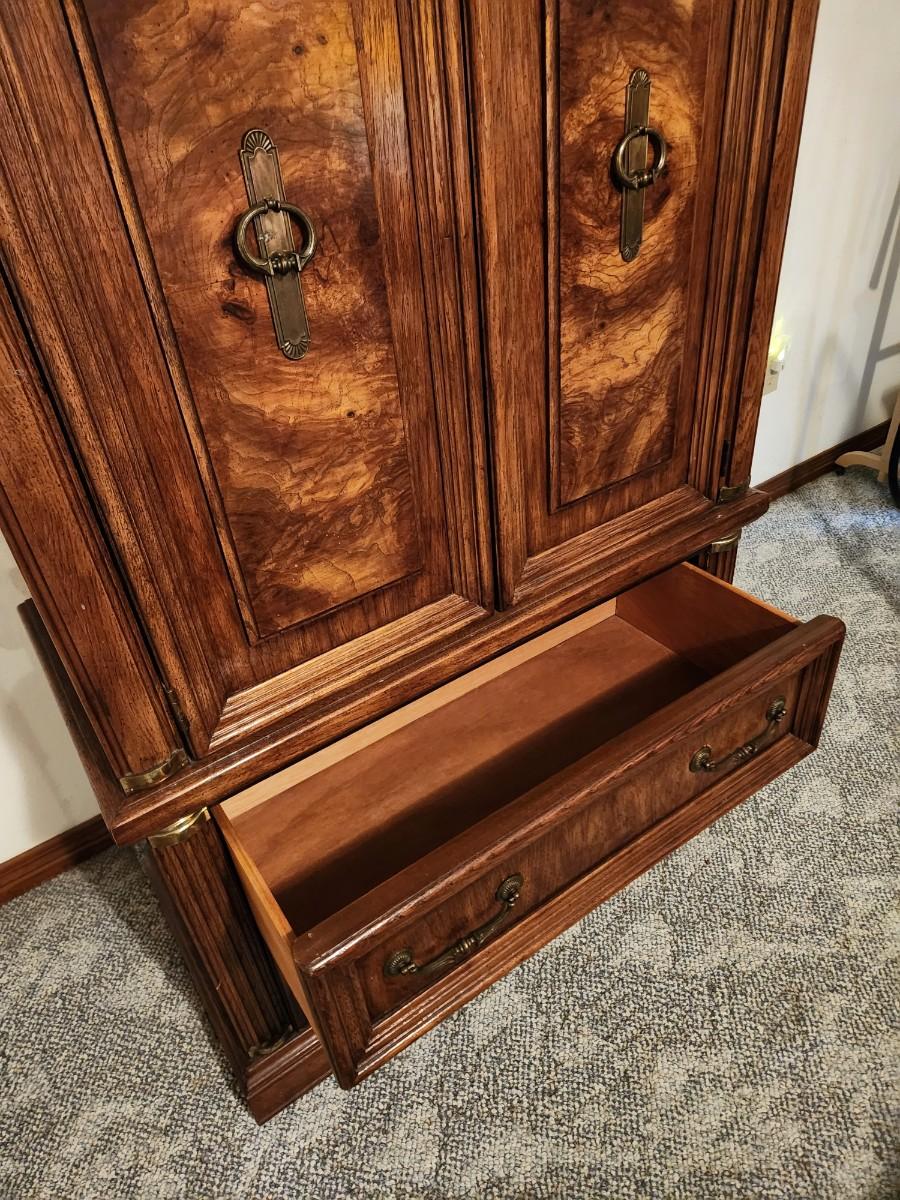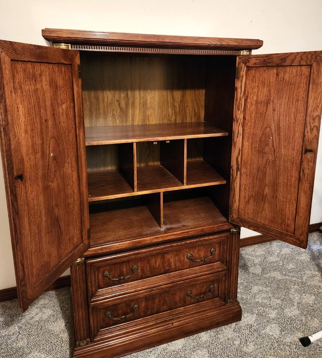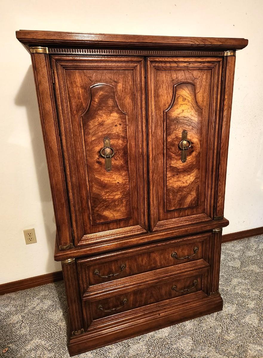 Bedroom Chest - 1980's - Oak finish, 2 drawers, 38" across, 19" deep, 62" tall. Gently used condition.