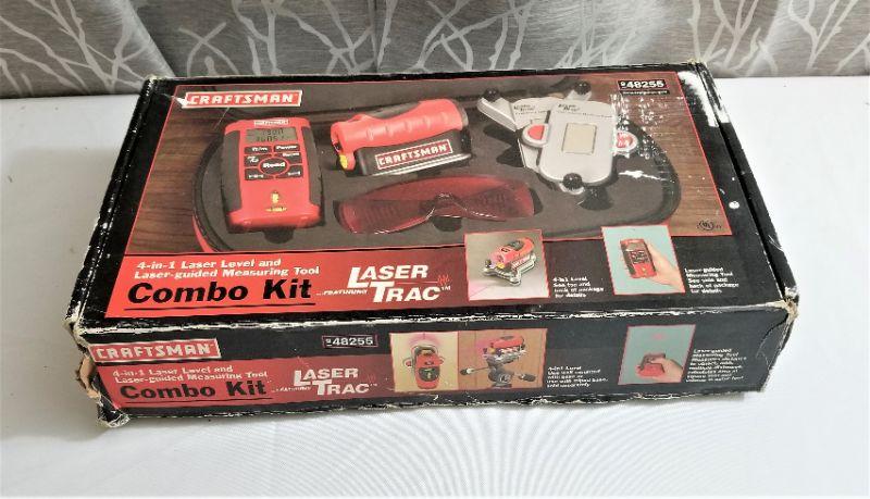 Gently used Craftsman 4-1 Laser Level and Laser guided Measuring tool kit, complete with case. Model 9-48255. Looks like it's all there.