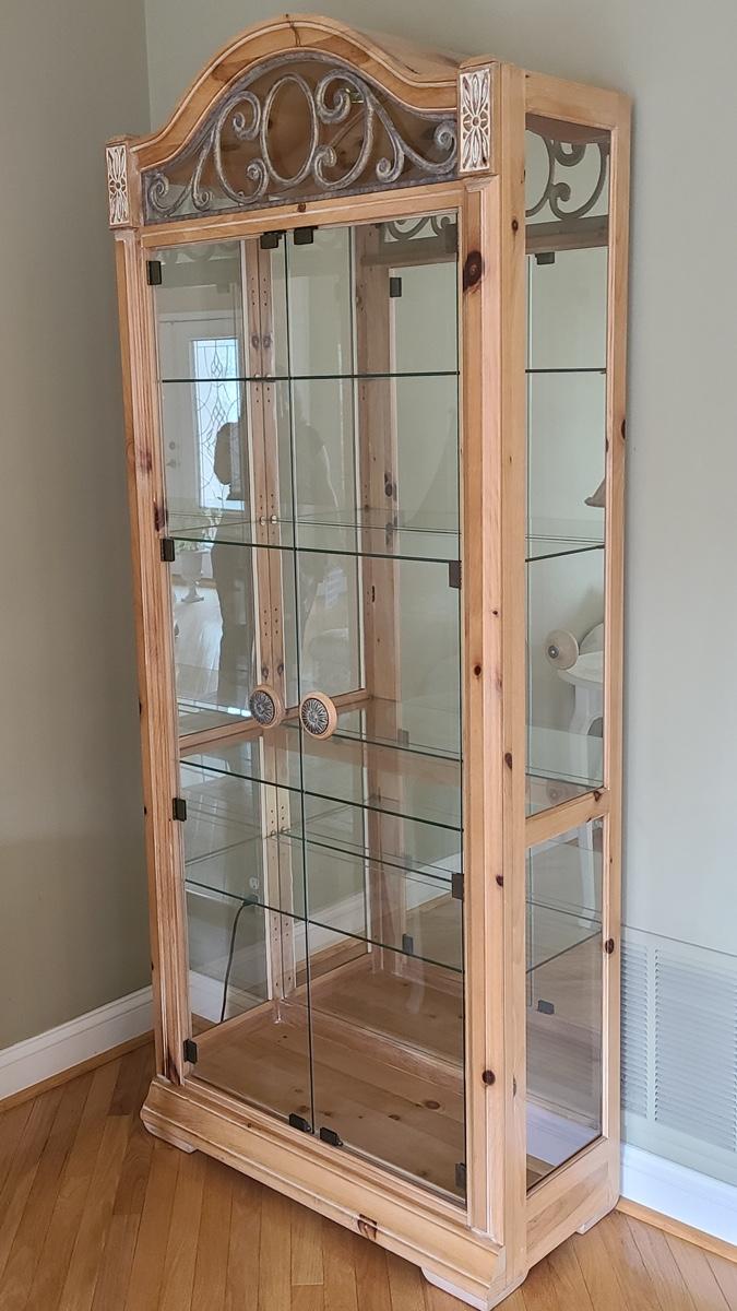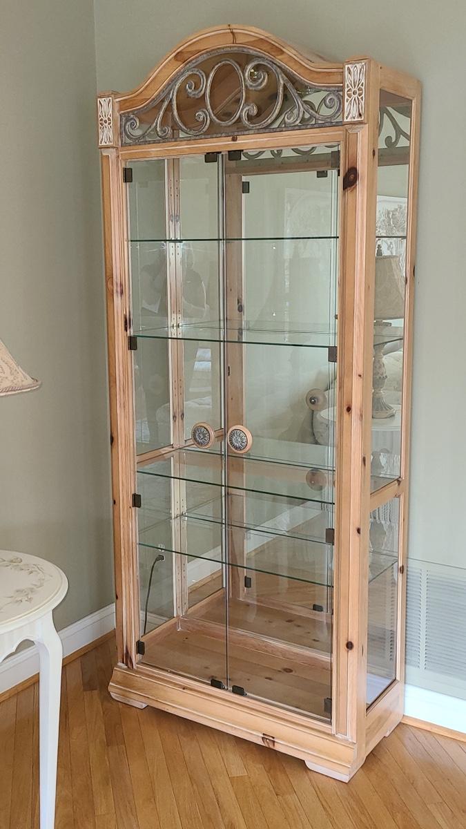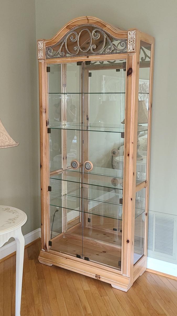 Decorative display case with glass shelves and mirror back. Perfect for any room in the home! Please see all pictures for content of the lot, condition of the lot, and measurements if taken. Pictures are the best representation of the items listed and items are untested unless indicated in description. Thank you for looking and have fun bidding!