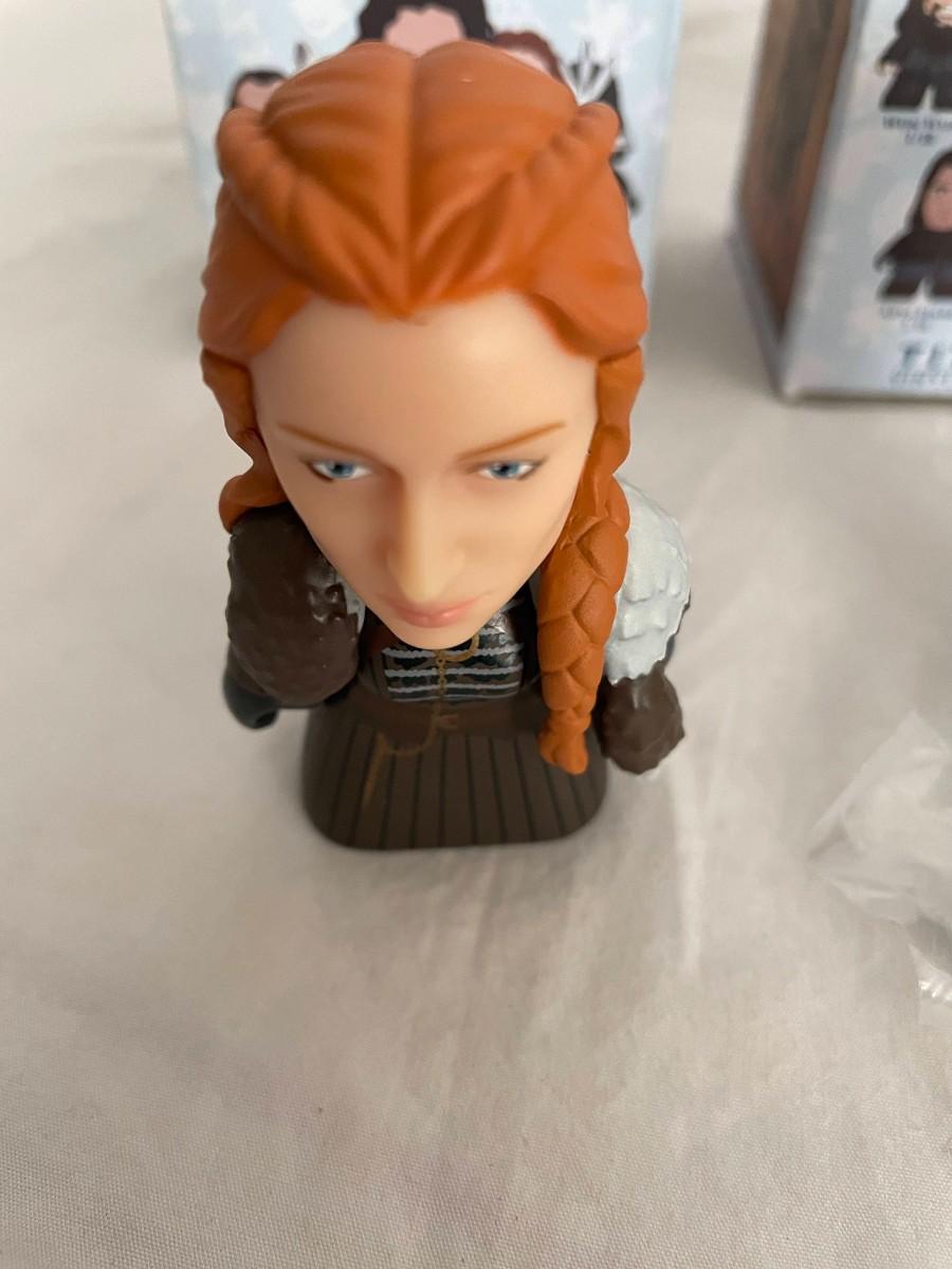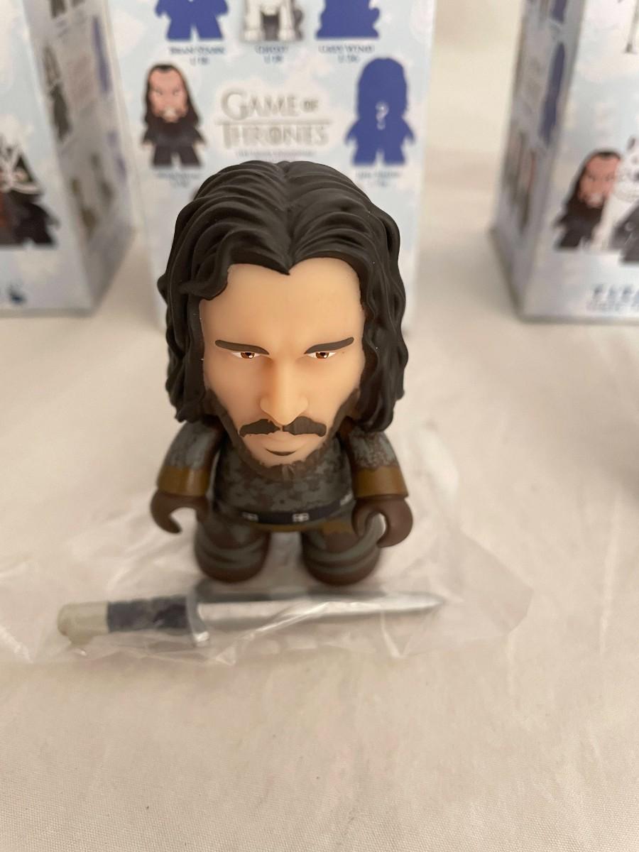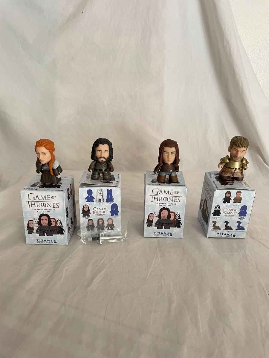 FOUR COLLECTIBLE MINI FIGURE FROM GAME OF THRONES. SANSA STARK, JON SNOW, ARYA STARK, AND JAMIE LANNISTER