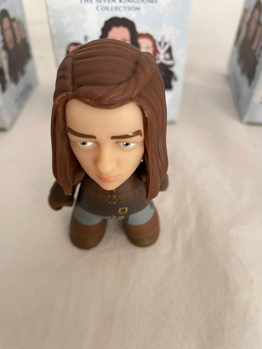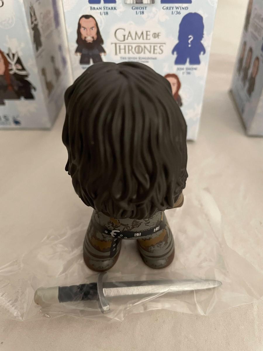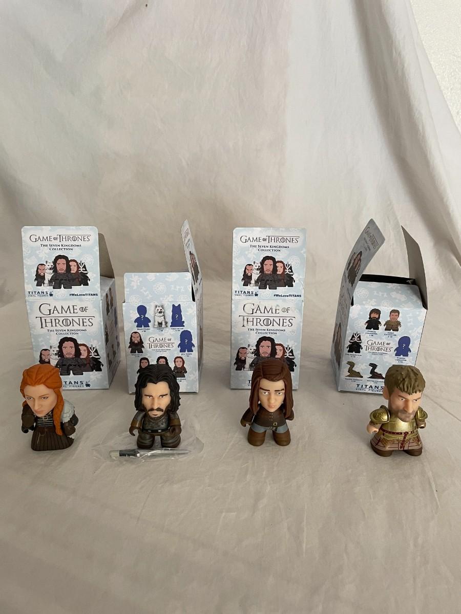 FOUR COLLECTIBLE MINI FIGURE FROM GAME OF THRONES. SANSA STARK, JON SNOW, ARYA STARK, AND JAMIE LANNISTER