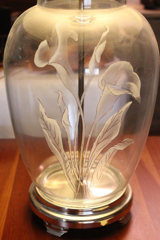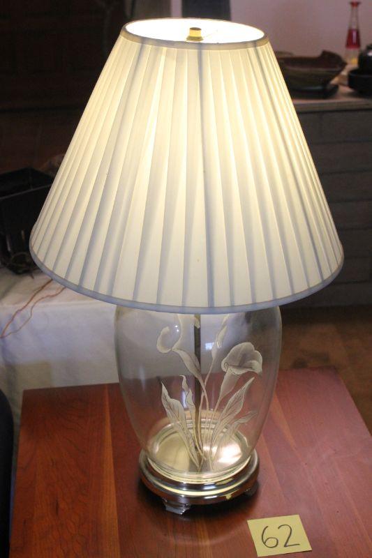 Lot 62 Glass Base Calla Lily Floral Table Lamp 2'3"