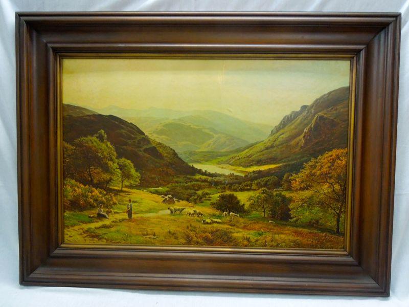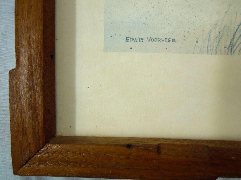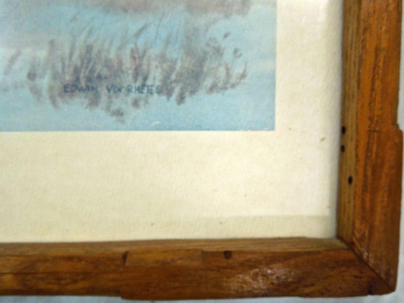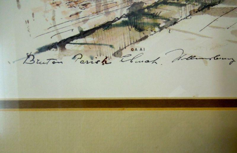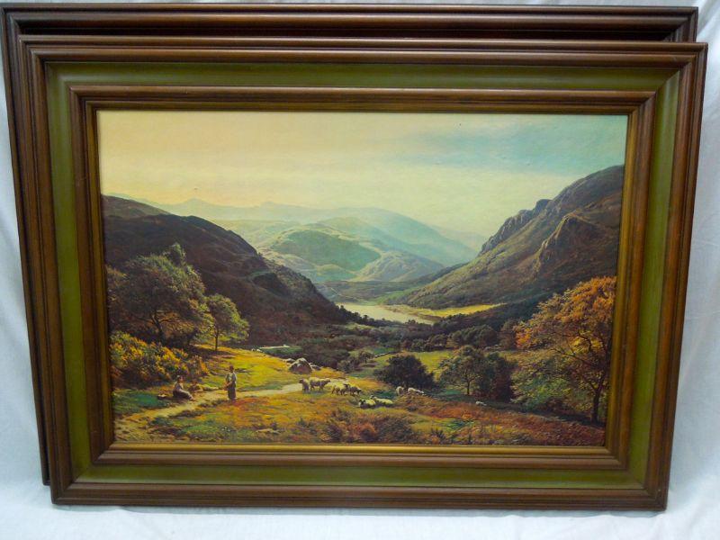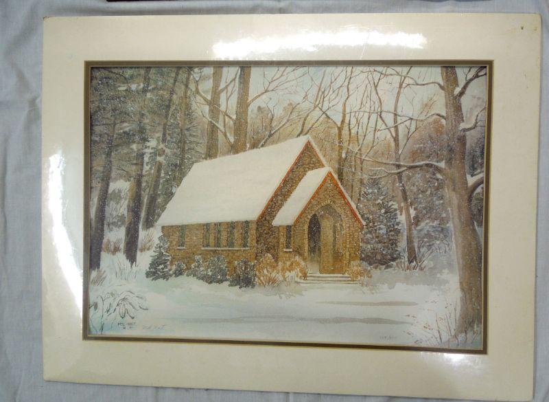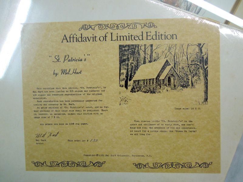 Largest framed picture is a 38" x 30" print and there are two of the same. One is darker print than the other. 8 other framed prints and originals, soome signed. Smallest is 12" x 9".