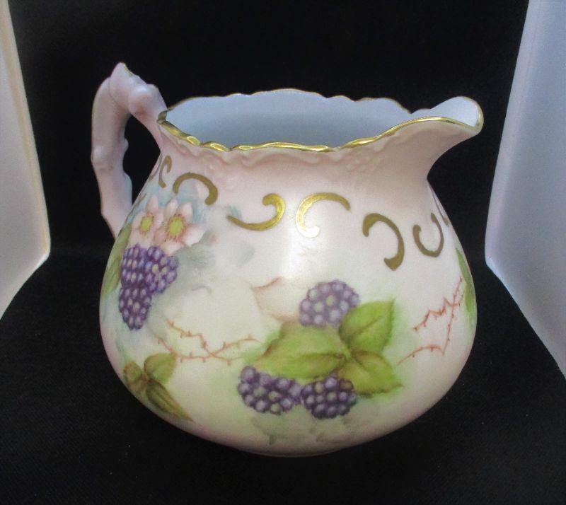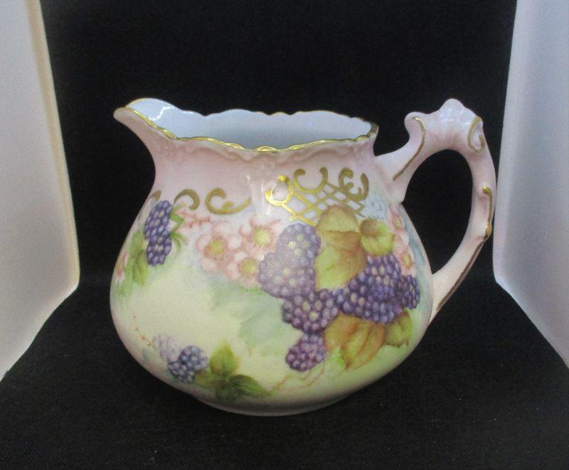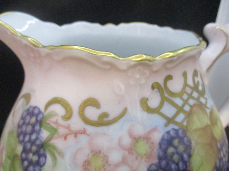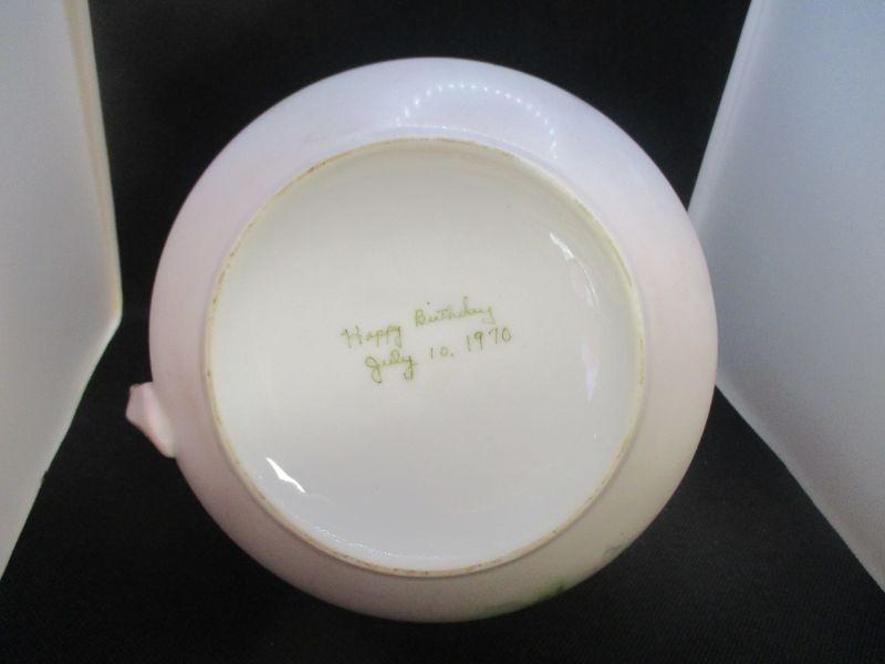 This pitcher was painted on my 1st birthday so you know that it's not only old, but extremely valuable (just kidding). It is about 6" to the top of the spout and I didn't find any chips or cracks.