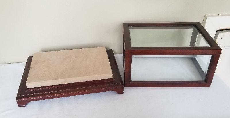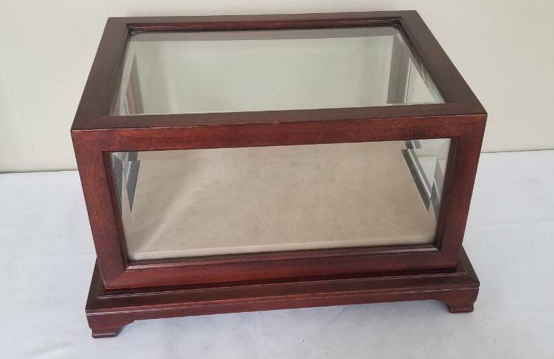 The top lifts right off of this handsome glass display piece - made by the Bombay Company. Gently used condition. Measures 12" x 15".