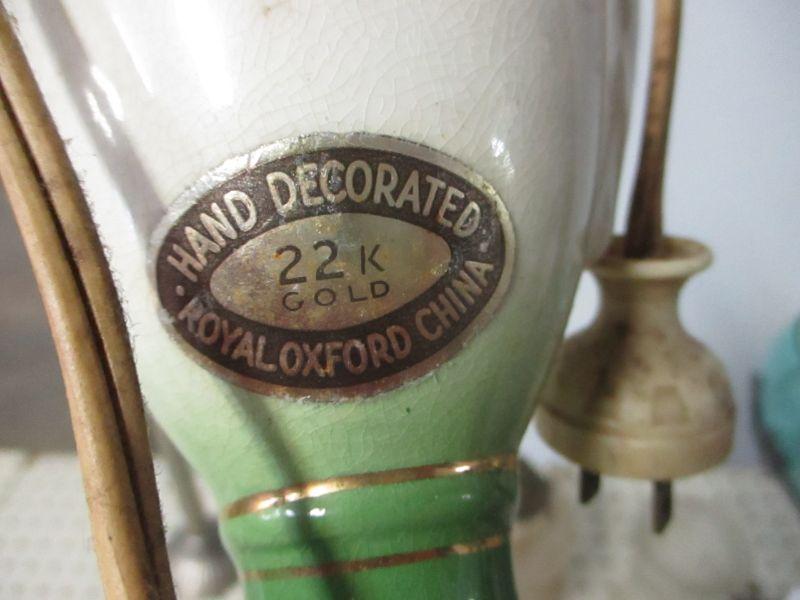 Lot 62 - Hurricane Lamp - Vintage Royal Oxford China Lamp, Hand Decorated,