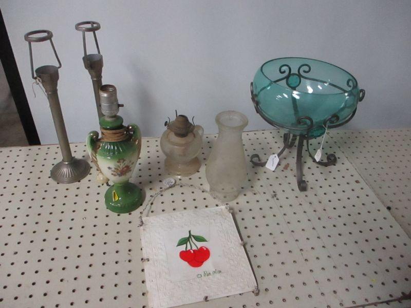 Hurricane Lamp - Vintage Royal Oxford China Lamp, Hand Decorated, Decorative Glass Display and more