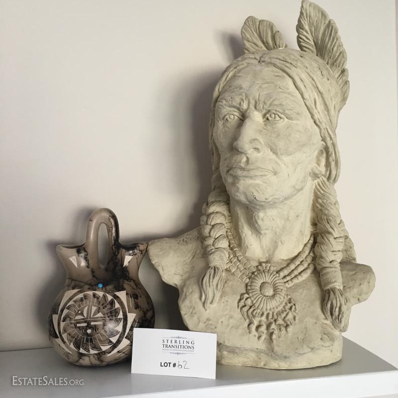 LOT 62 - Indian Bust and Horse Hair Pottery
