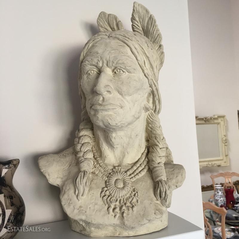 Large Indian Bust. 20"Tall. Possible made of plaster. Hollow inside. Off-White Color.