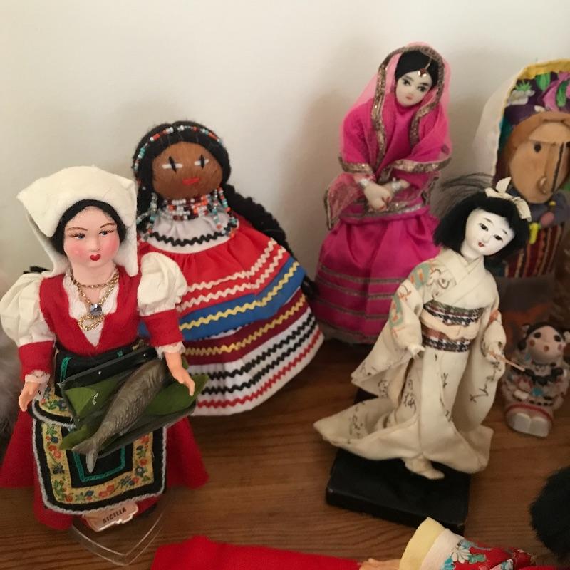This lot includes dolls of differing regions of the world.  Dolls are made of various materials including plastic and wood, some are jointed, all with garb of exquisite detailing.  The tallest of the group measures aprox. 12" tall. Very good condition.  Shipping available.
