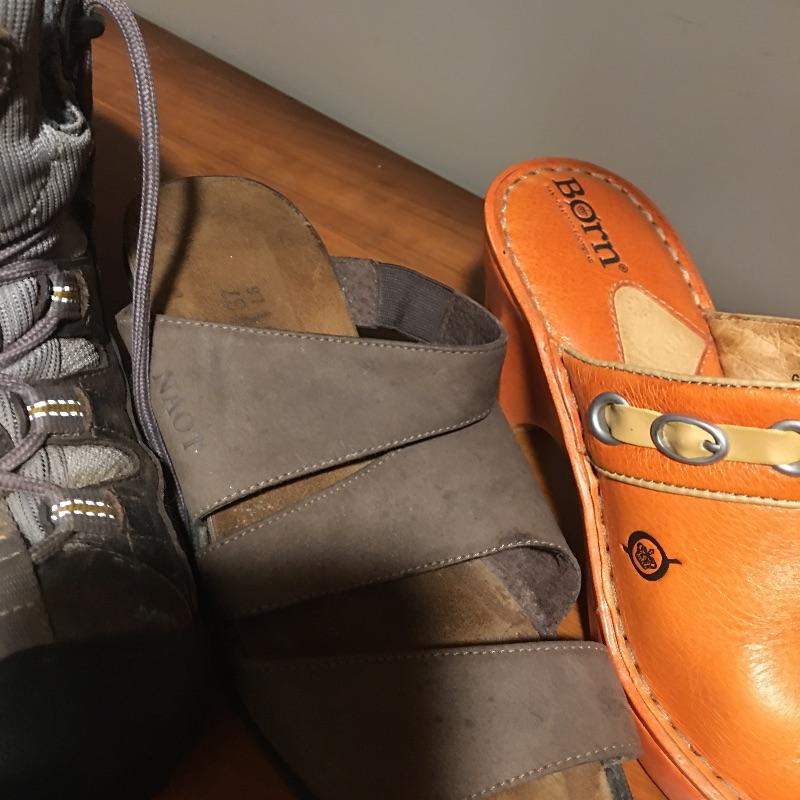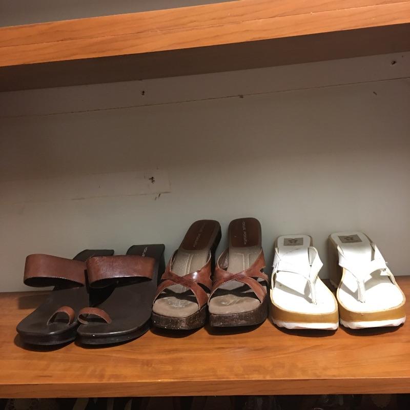 This collection of ladies casual shoes will have you ready for any occasion with its variety. Brands include Grendha, Keen, Born, Candies, Kim Rogers, Mudd and more. Shoes are size 6.