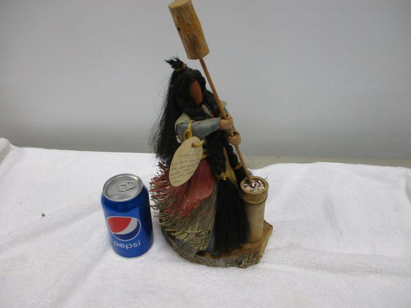 Lot 62 - Native American Corn Husk Doll Pounding Corn Corn husk doll