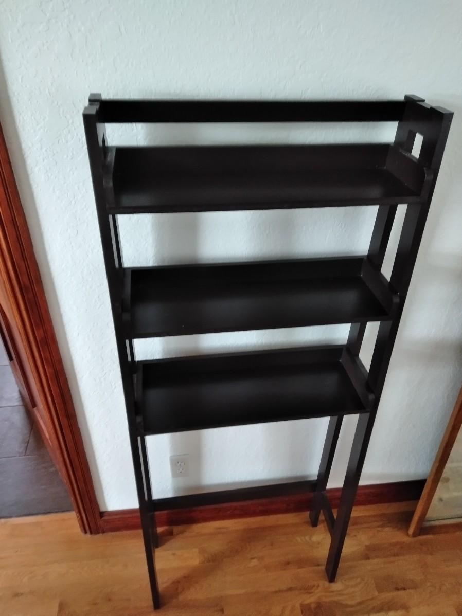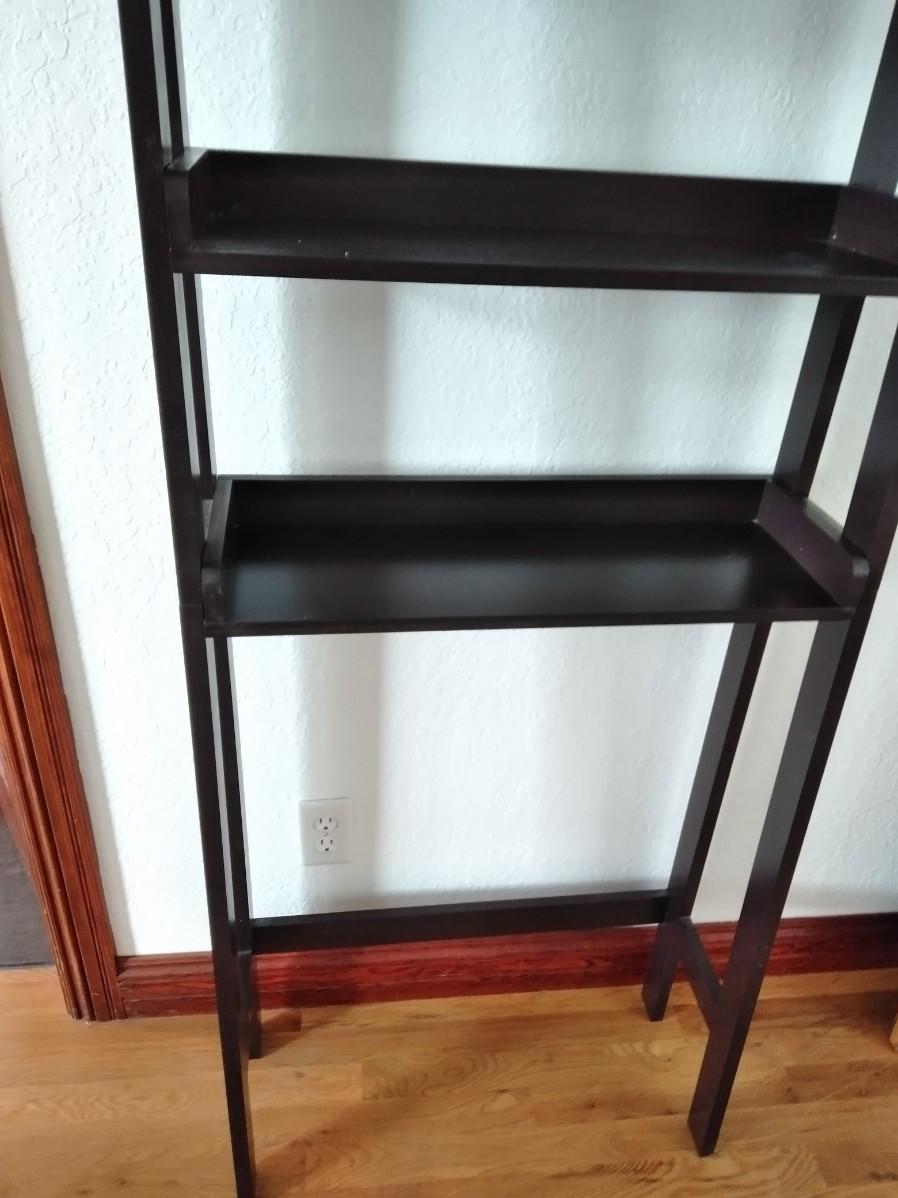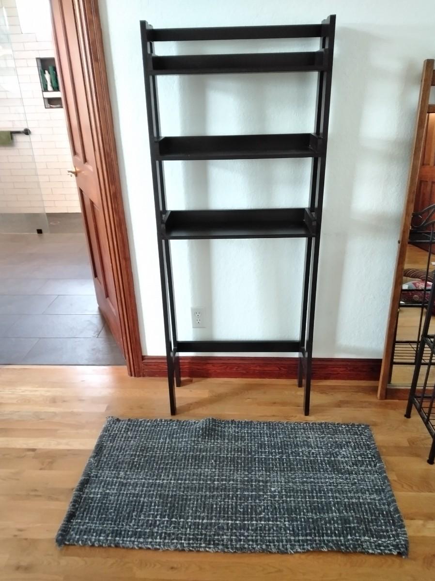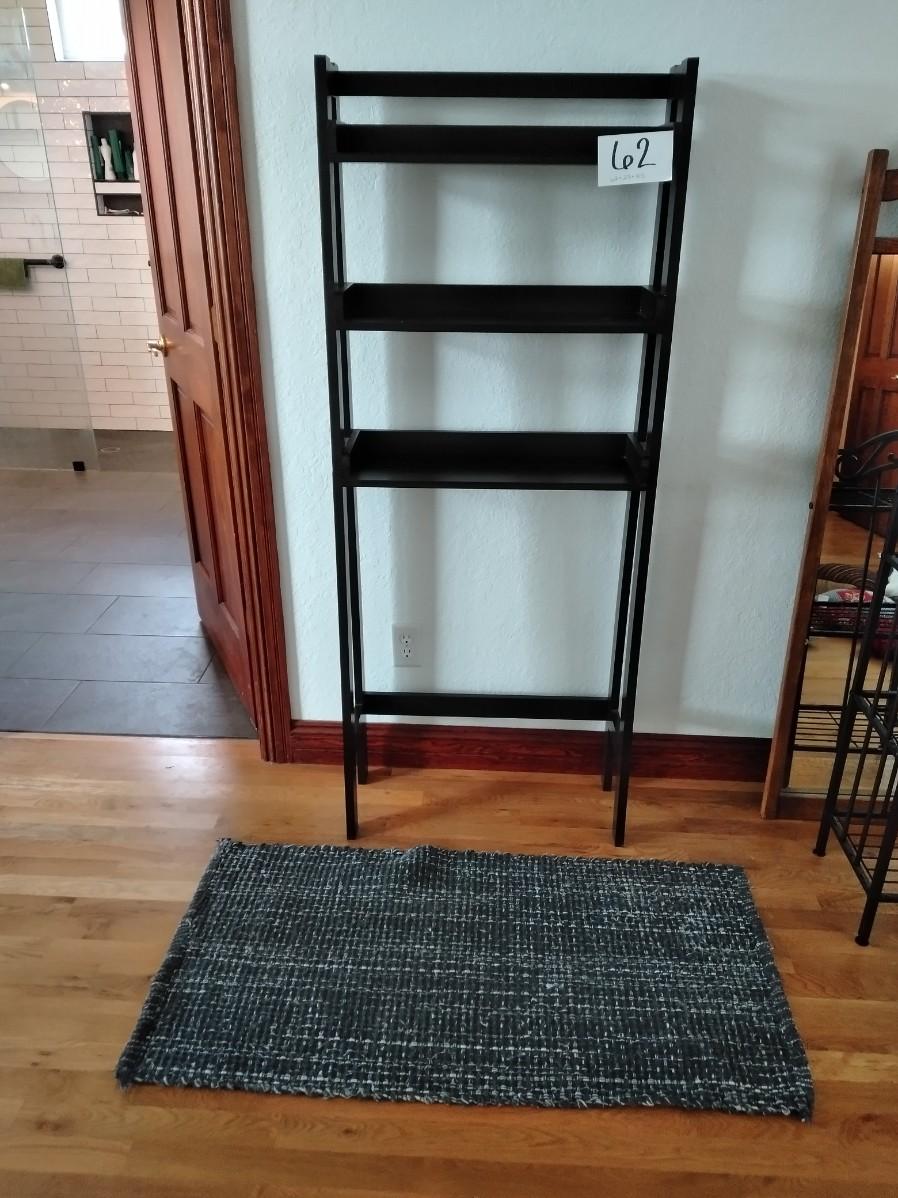 OVER THE STOOL STORAGE SHELF 62" X 25" X 9.5" AND A SMALL WOVEN THROW RUG