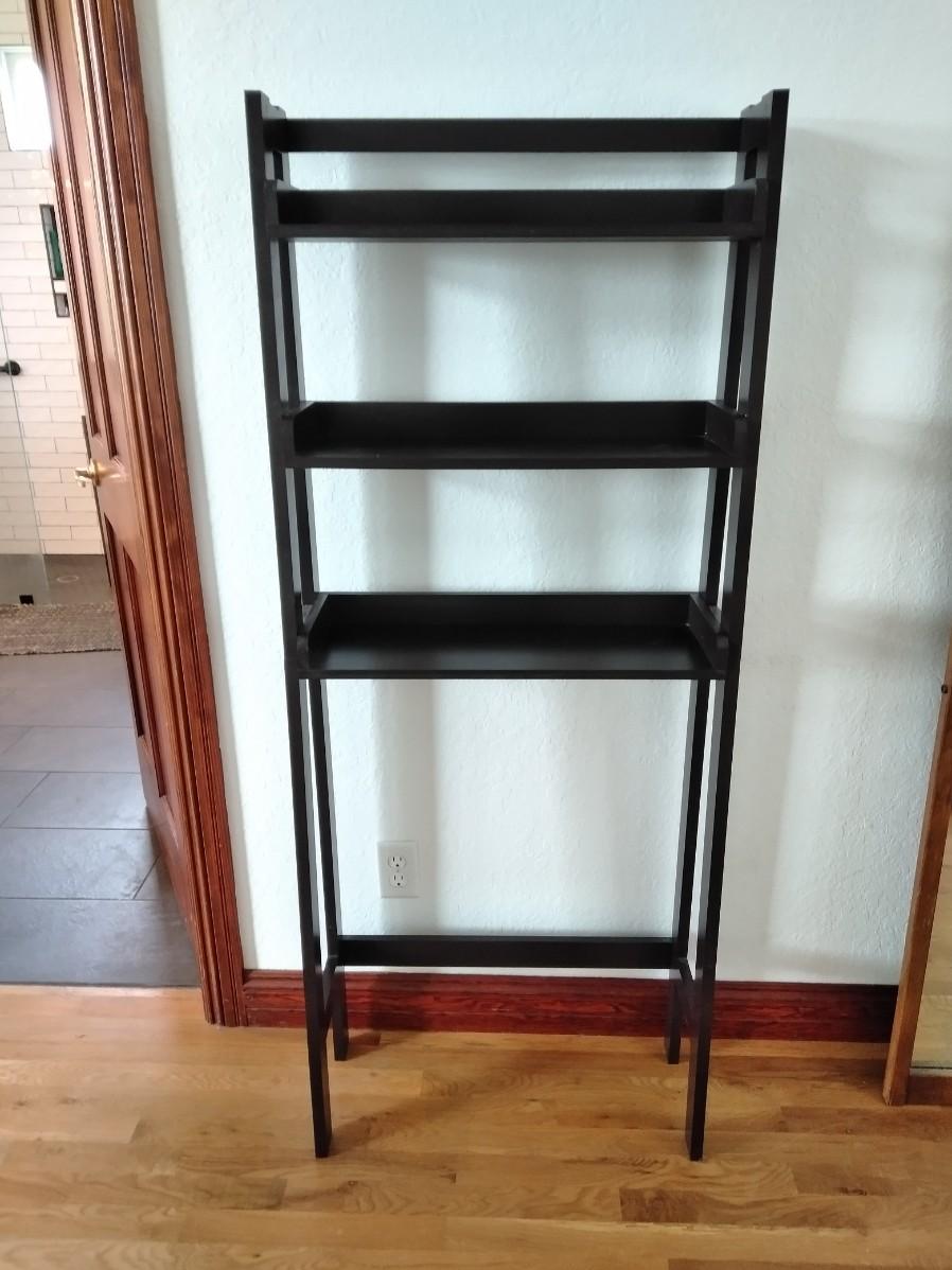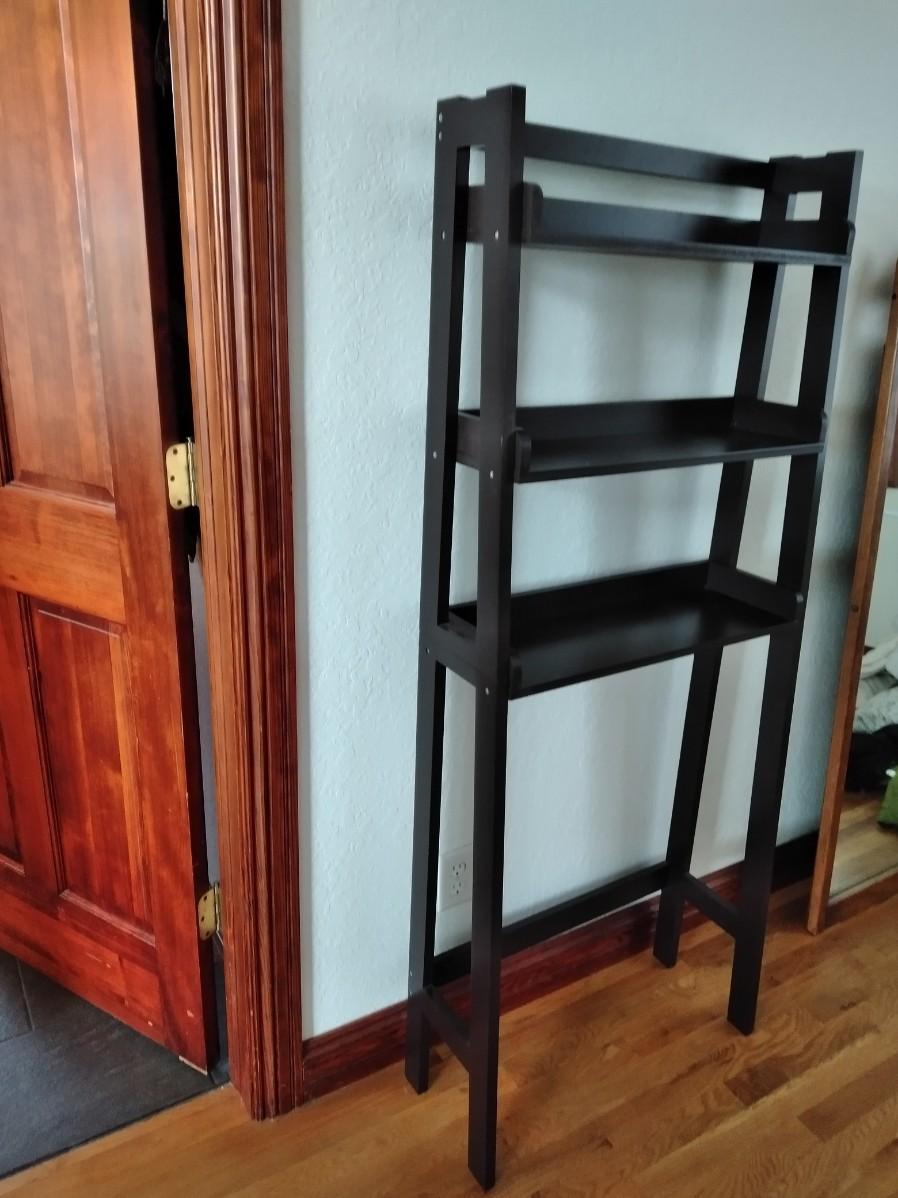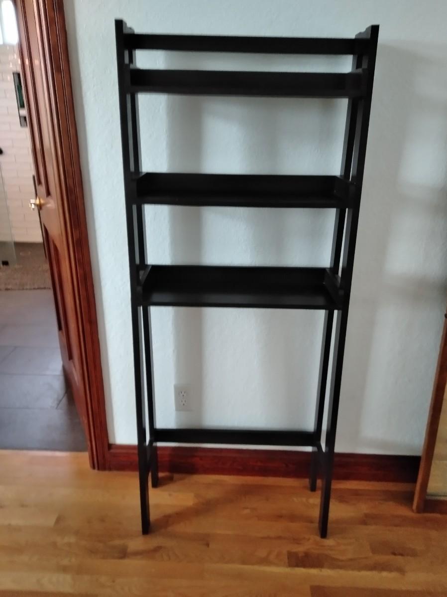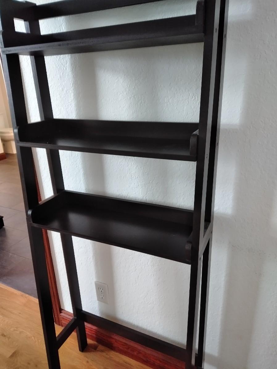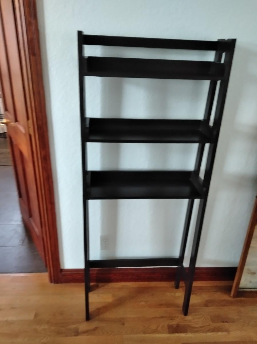 OVER THE STOOL STORAGE SHELF 62" X 25" X 9.5" AND A SMALL WOVEN THROW RUG