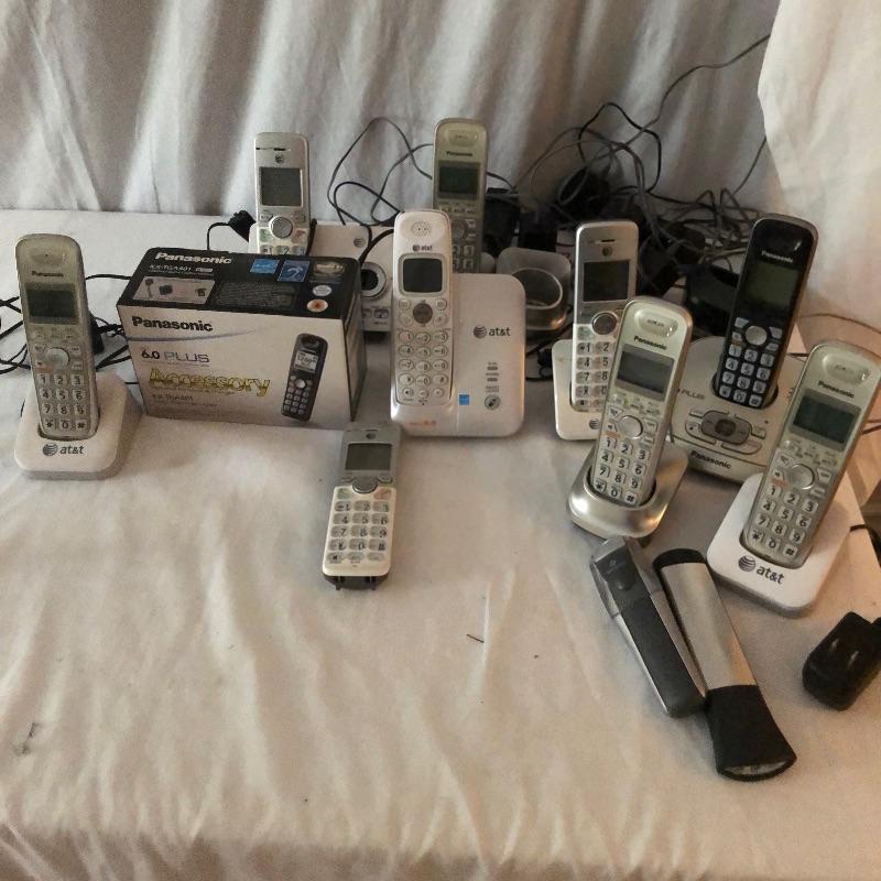 Need land-line phones, then we have you covered with this large lot of cordless phones. Nine in total with one still in its box, plus an extra phone and a few extra bases to cover all your calling needs. Lot also includes a nifty flashlight and a reading light.