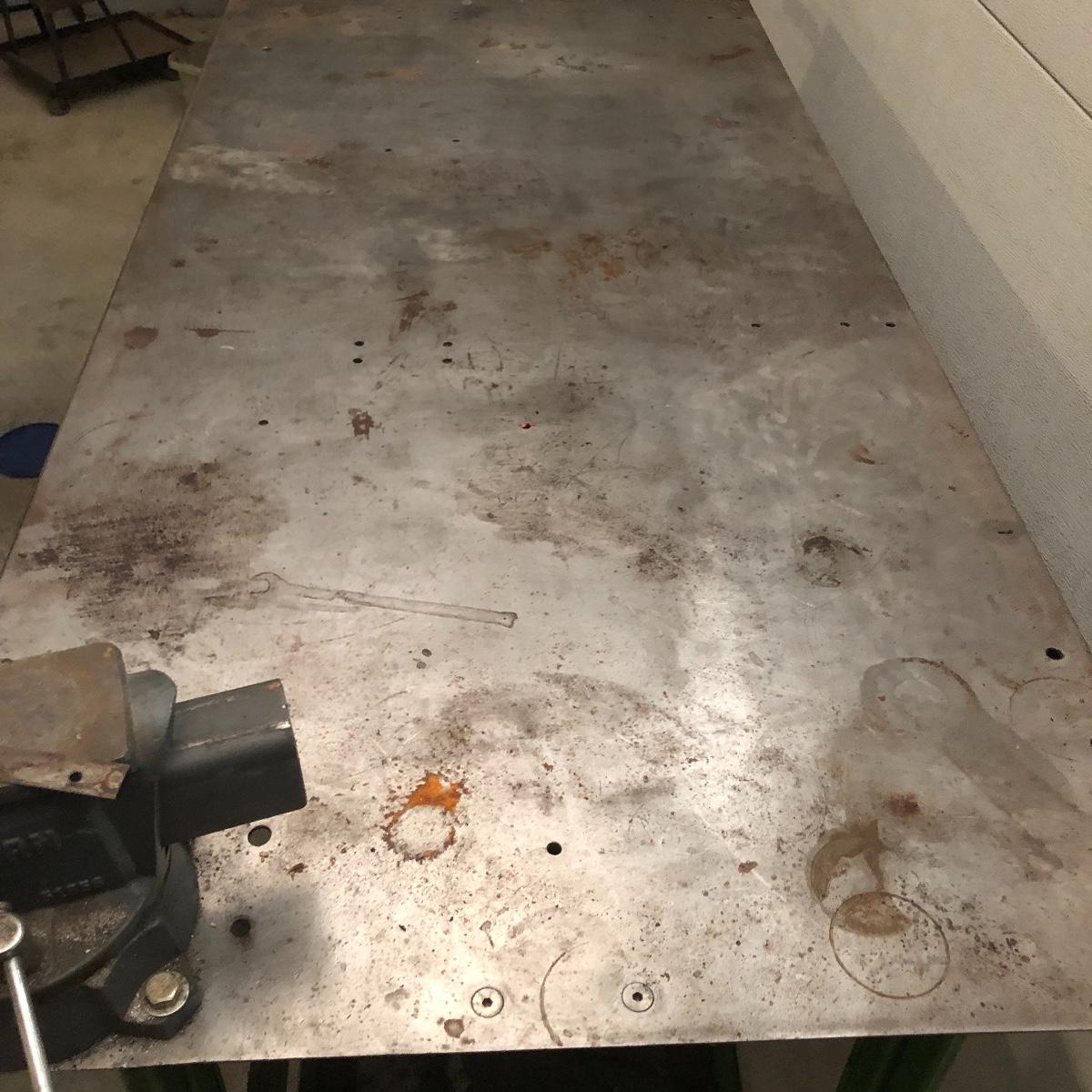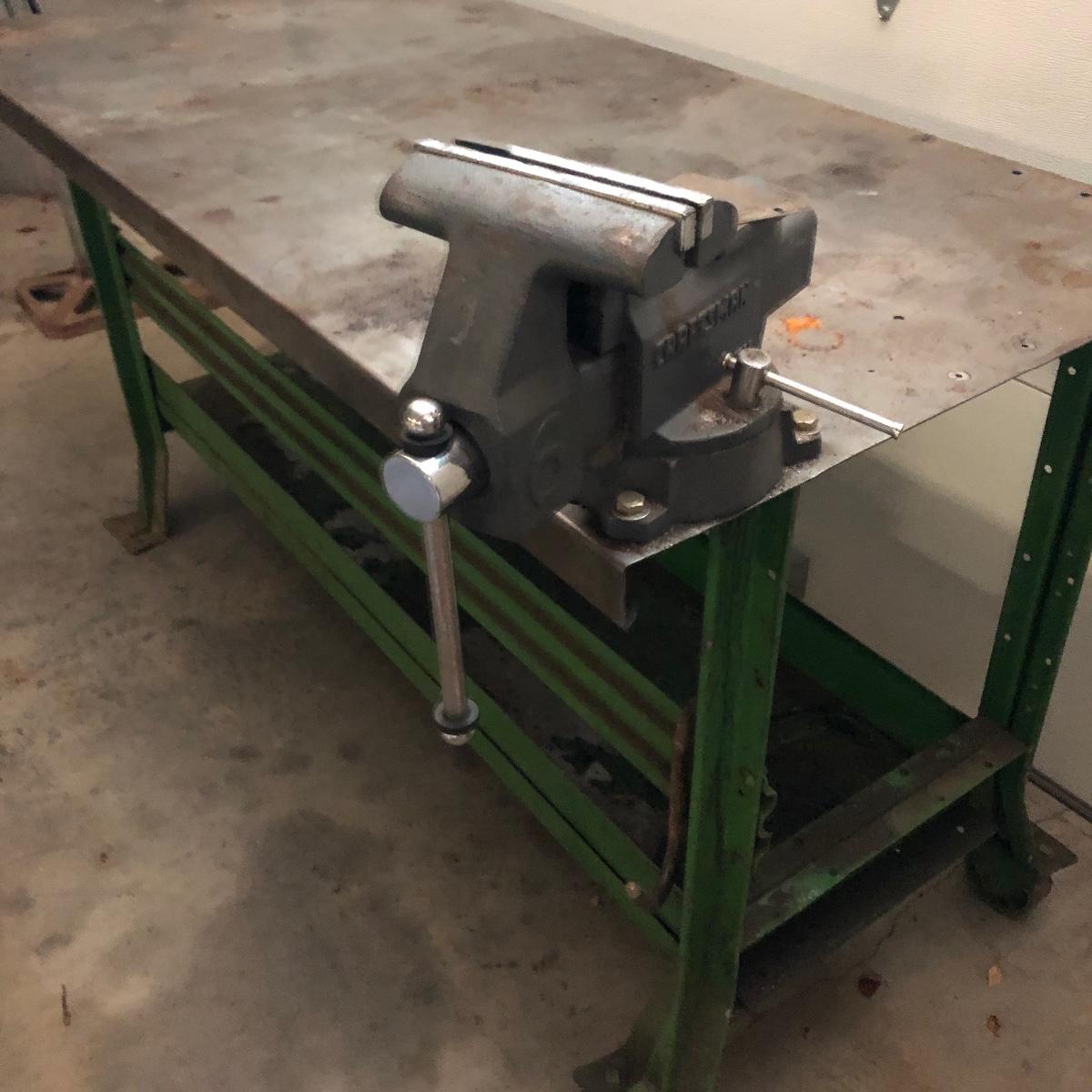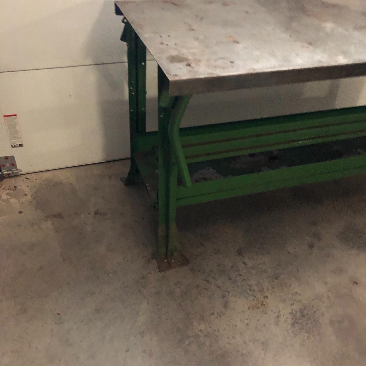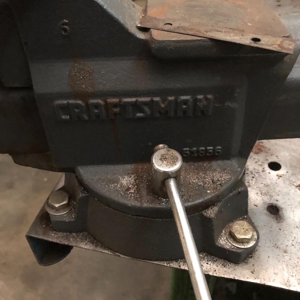 This industrial table has two wheels and folding handles that make it easy to move around. The table has a Craftsman vise attached and a steel top with a steel shelf underneath. This table will be great in your kitchen or workshop with its great industrial feel. Table measures 29” x 60” x 33.5”. Bring help item is substantial.