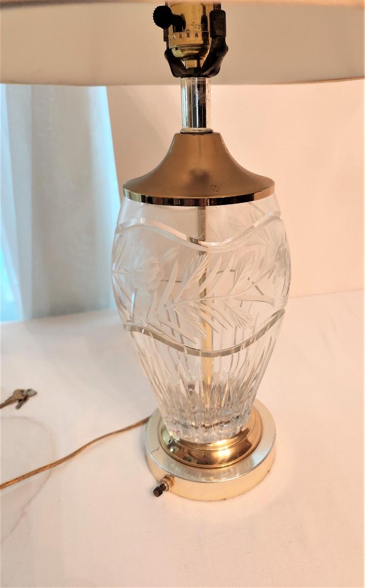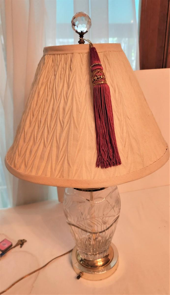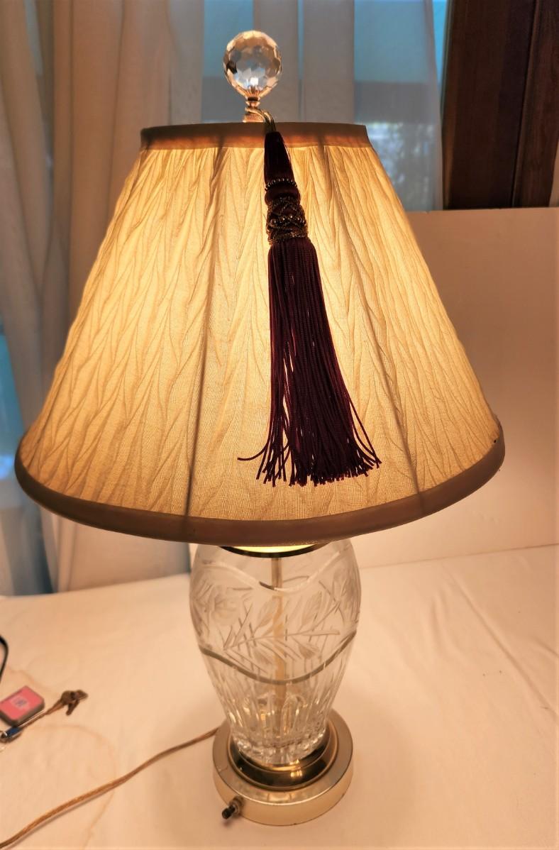 Contemporary Table lamp in the traditional style - Crystal/Glass base - faceted finial at top, about 26" tall - works.