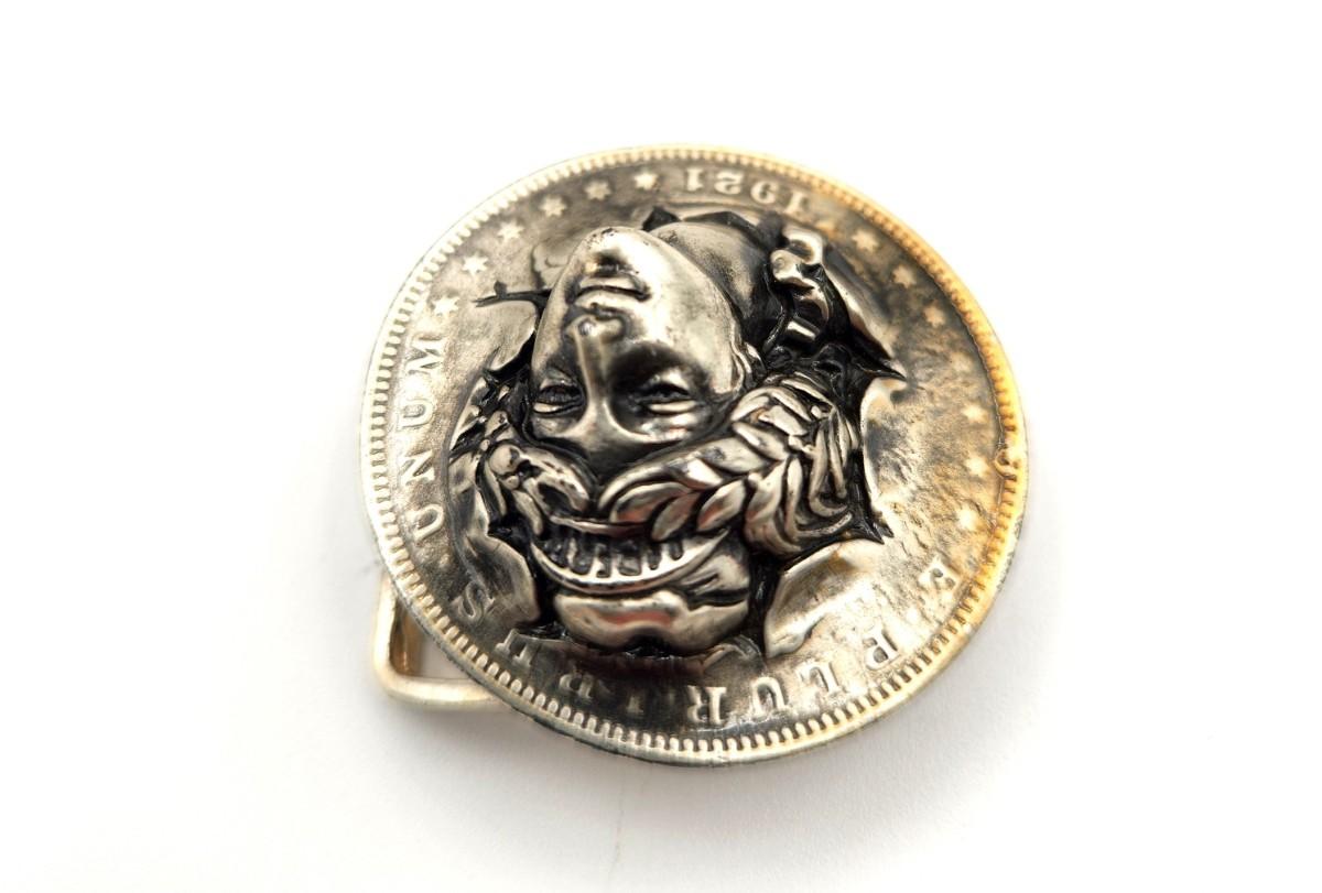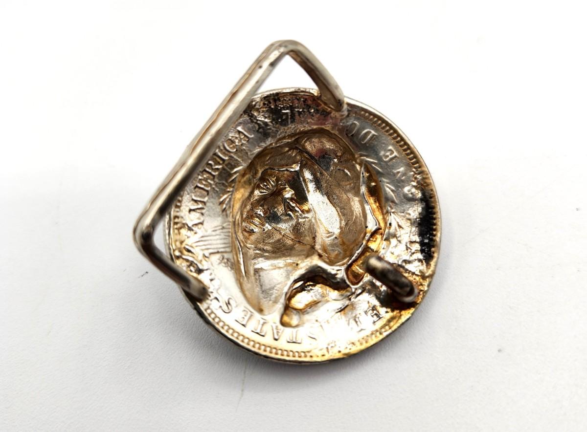 "Push through" 1921 Silver Dollar Belt Buckle, a little over 1.5" across - vintage item. There will be other pieces like this in later lots.