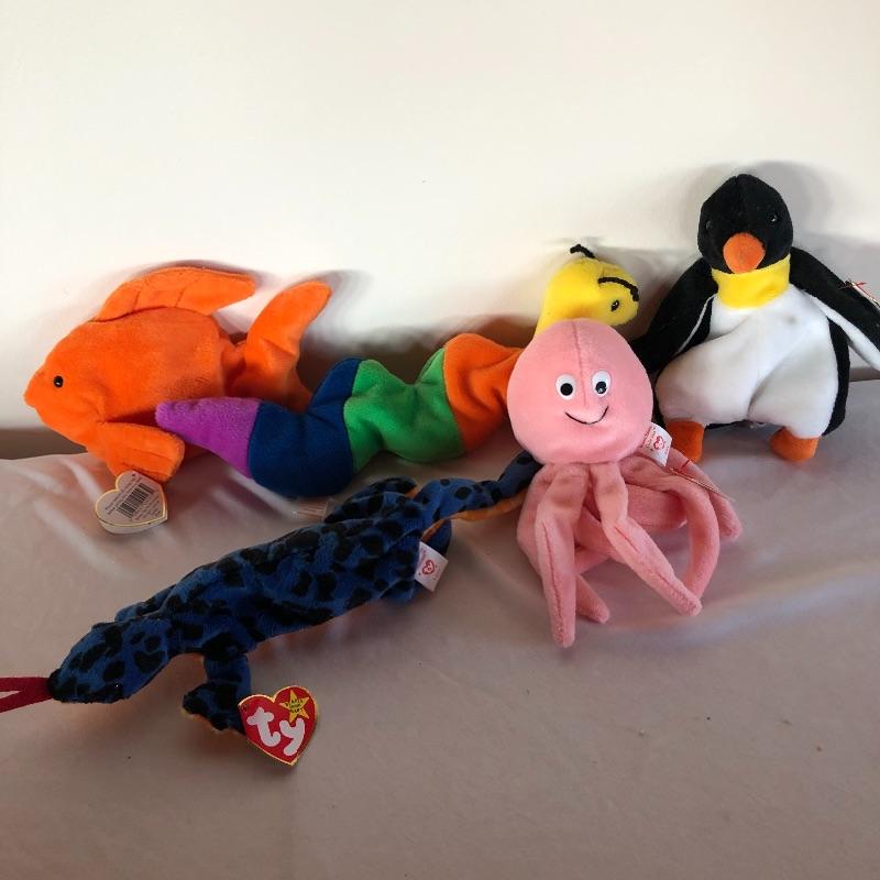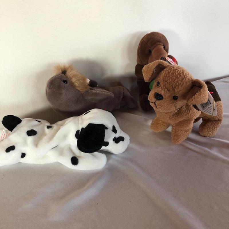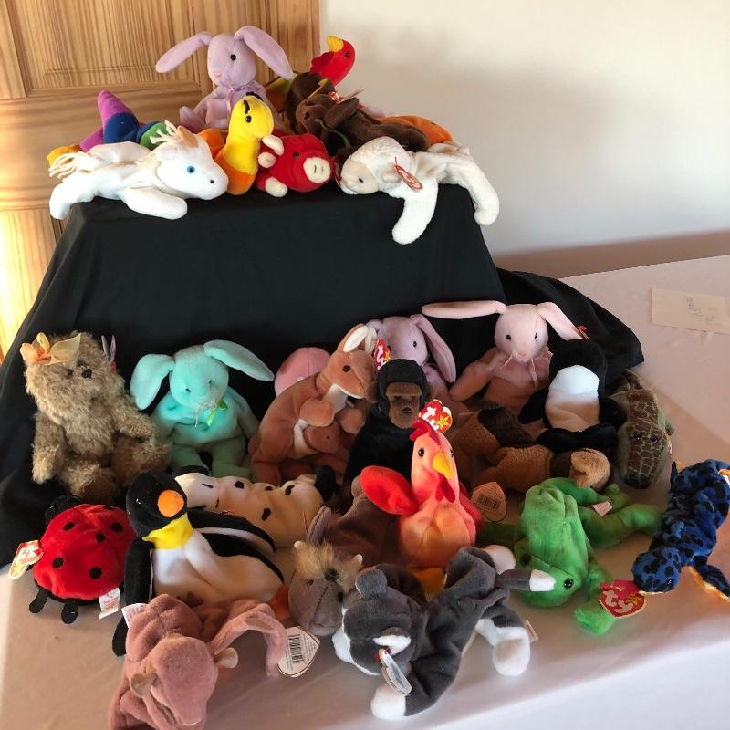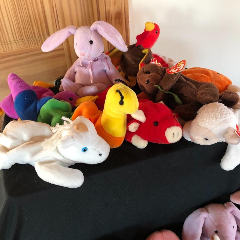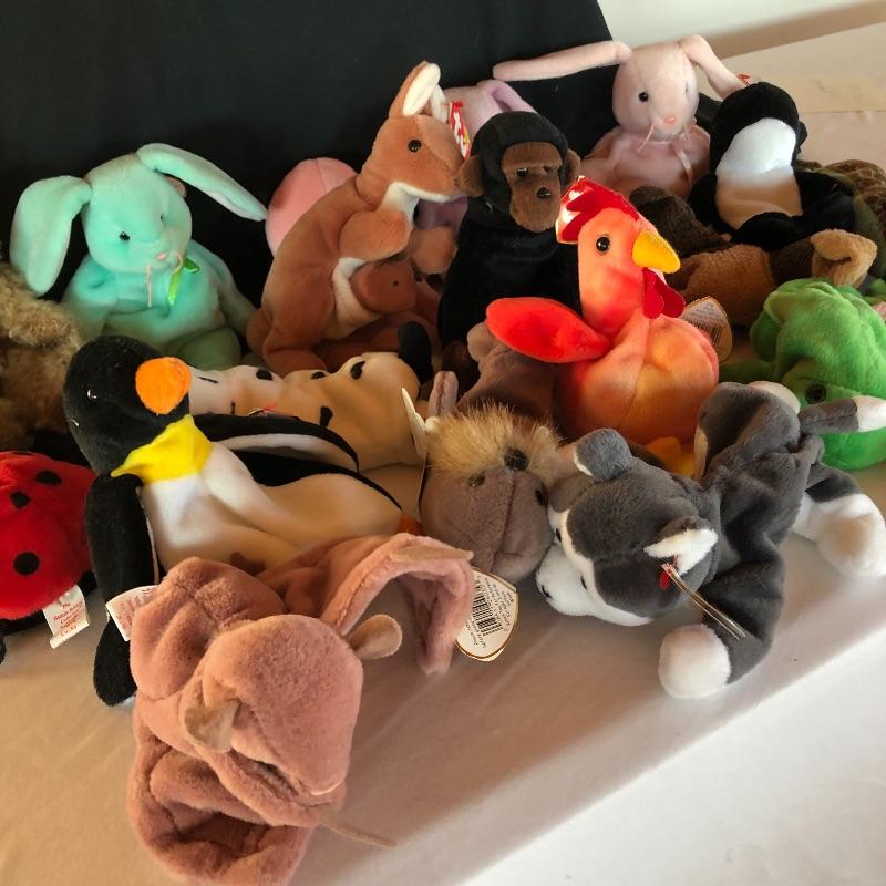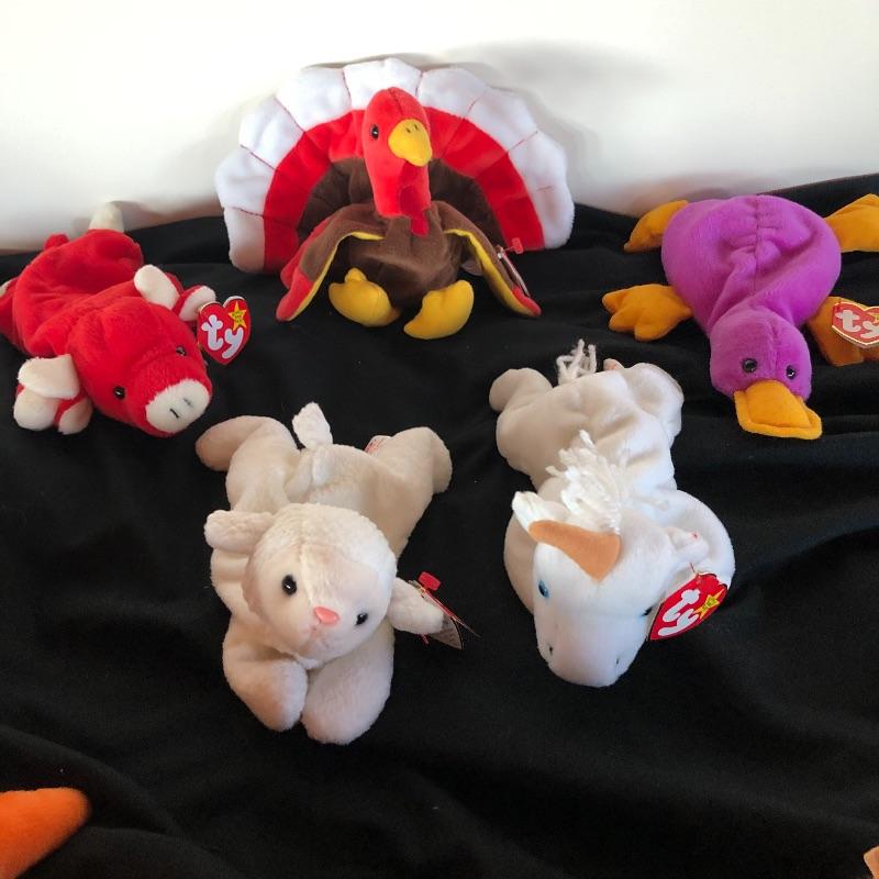 You can stuff a lot of stockings with these 28 TY beanie babies! This lot includes many animals that are sure to delight both young ones and more mature adults! Included are bunnies, unicorns, turkeys, kittens, penguins and many others! All Ty babies have tags except Floppity.