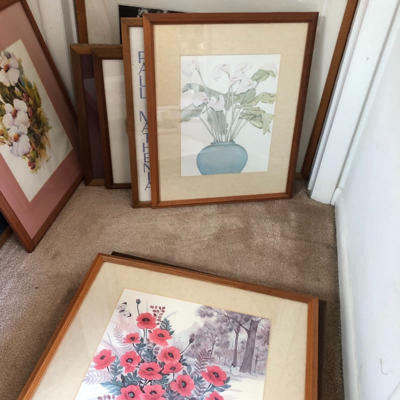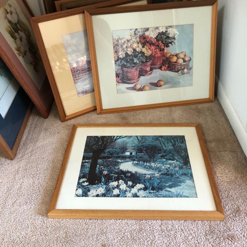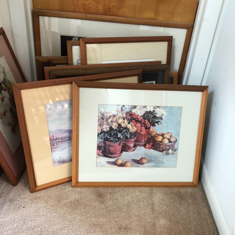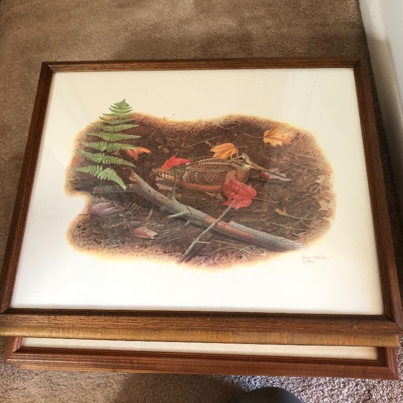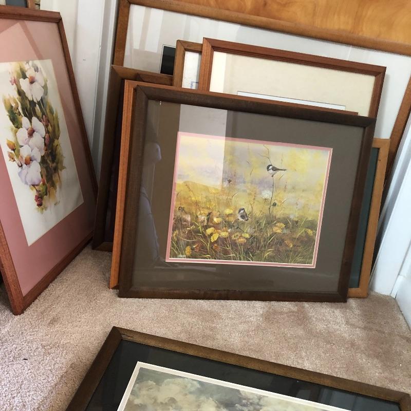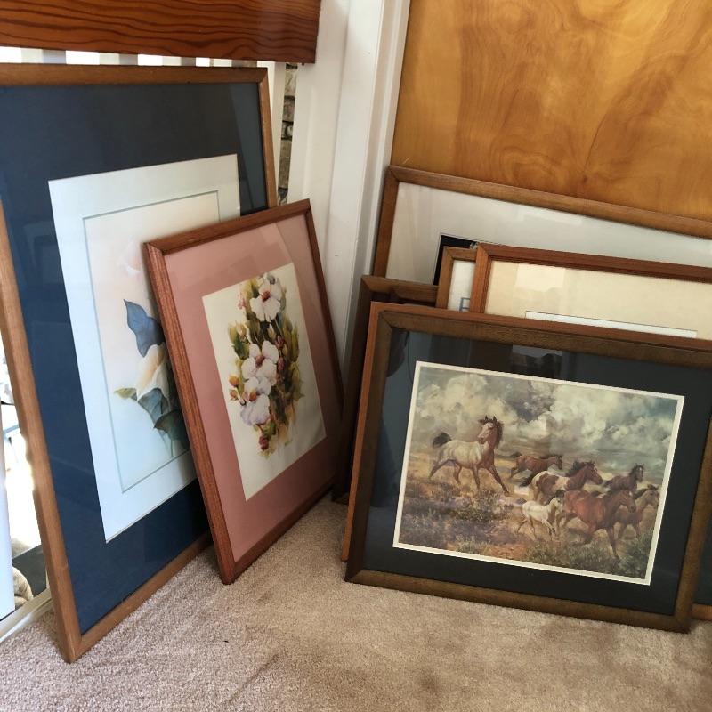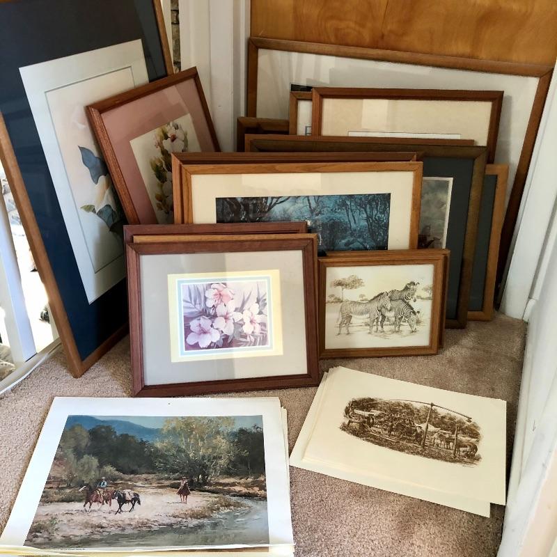 Over 15 framed pieces in this lot; all frames are wood and a few have mattes as well. The unframed art includes prints that have the stamped signature “˜Shade’ on all but one. Also included are a collection of Ohio People and Transportation prints. Most of the artwork can be switched out of the frames.