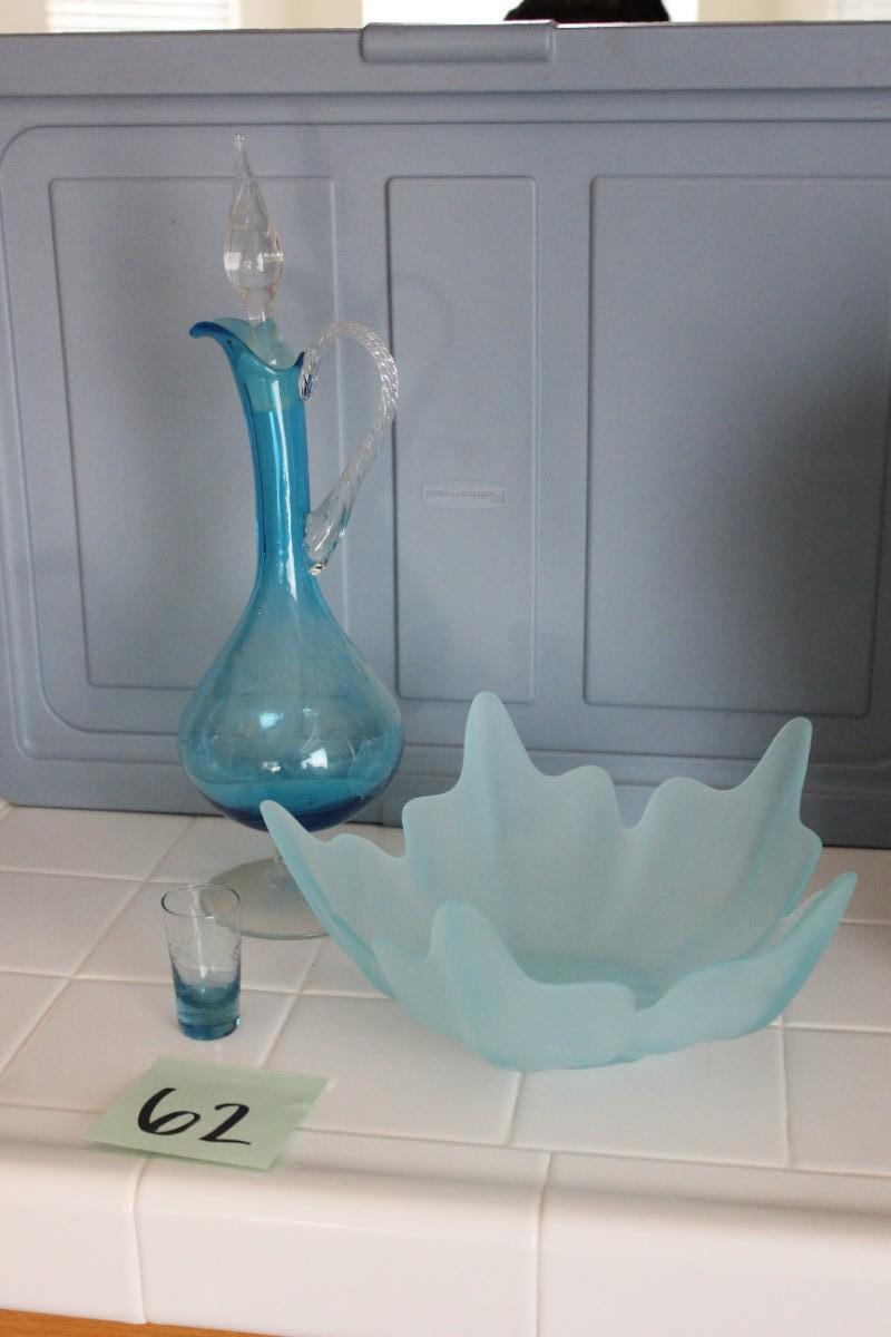 Lot 62 Vintage Blue Decanter and Bowl